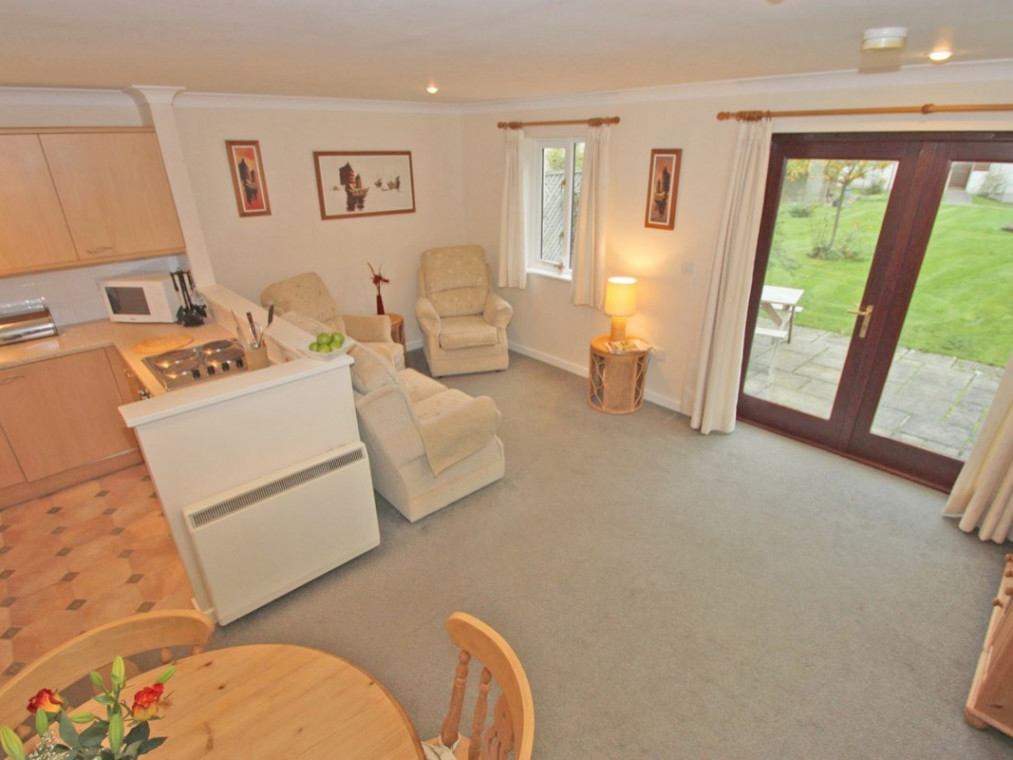 Resting within an endearing location, is the contemporary dwelling, Daisy Cottage. This heart-warming retreat offers a superb base for a small family looking to get together to explore the breath-taking coast of Falmouth in Cornwall. Upon entering the property, you will be greeted to a spacious open-plan living space, where you can look forward to enjoying a welcoming sitting area. If you fancy a quieter evening, use the lounge area to get lost in a good book while curled up on one of the armchairs. Have a sociable evening in the dining area over a delicious home-cooked meal, prepared in the well-equipped kitchen housing all the appliances you could need for a weekend by the coast. As the evening draws to a close, take the stairs up to two first floor bedrooms, comprising of a double and bunk room, ideal for families with small children. The family bathroom has a bath and shower over for your convenience. Throw open the patio doors, which lead out to a spacious garden, where you and your loved ones can enjoy a refreshing beverage on the patio area whilst taking in the lovely views across the other cottages and country fields. There's an on-site café and restaurant so you don't have to venture far for an evening meal or a quick drink, with access to a shared swimming pool with other cottages nearby. Venture into the bustling town of Falmouth for a number of tourist attractions, including a selection of sandy beaches, ideal for family day trips. Take a dip in the water, or race to build the highest sandcastle with your little ones and enjoy the coastal breeze. For a taste of history, Pendennis Castle is only a short drive away, and is an artillery fort dating back to the 16th century and constructed by King Henry VIII to protect against invasion from France and the Holy Roman Empire. An exceptional piece of architecture and many more to discover nearby. After all this sightseeing, return to Daisy cottage for a relaxing evening with your loved ones. Note: as part of the Holiday Village lease requirements, guests may not take vehicles which have sign writing on them. Please note that an unfenced stream runs nearby through the holiday village. Two bedrooms: 1 x double and 1 x bunk room. Bathroom with bath and shower over, basin and WC. Ground floor cloakroom with basin and WC. Open-plan living room with a kitchen, dining area and sitting area. Amenities for Rental Electric heating Electric oven and hob, microwave, fridge with ice box, toaster, kettle, dishwasher, TV, a selection of books, games and DVDs and WiFi Fuel and power inc. in rent Bed linen and towels inc. in rent Travel cot and highchair Child safety gate Lawned garden and private patio area with furniture Access to on-site café/restaurant and swimming pool Two well-behaved pets are welcome Sorry, no smoking Shop 1.1 miles and pub 0.9 miles