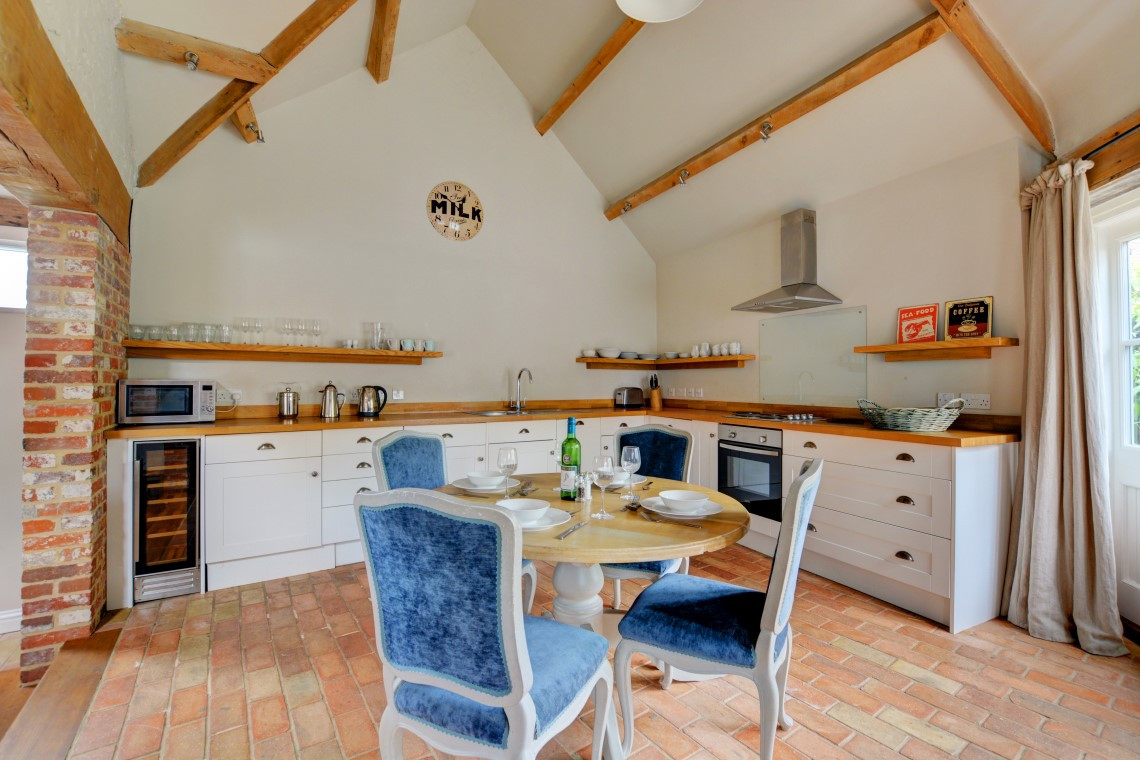 This spacious dog-friendly interior designed barn is one of a pair of 5* properties (the other being Simon's Barn) which is just next door. Perfect for a family of four and two pets, the beautiful barn features open plan living with sink-into sofas, a wood burner to cosy around on cooler days, a fully equipped kitchen and two light and airy bedrooms, with en-suite bathrooms. Underfloor heating runs throughout the property to keep toes and paws comfortable, and the outside courtyard garden is a pleasant place to end the day for a drink or summer supper.