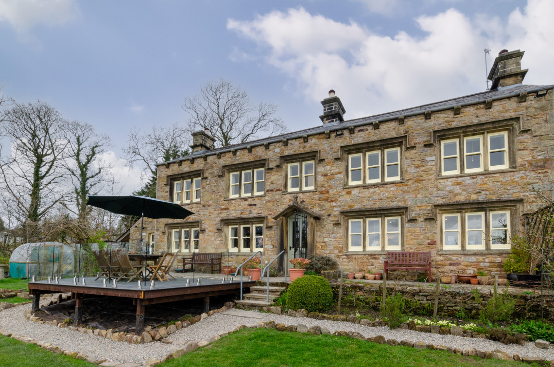 - Outside: Hot tub, terrace deck, patio, large enclosed, lawned garden, bicycle storage is available