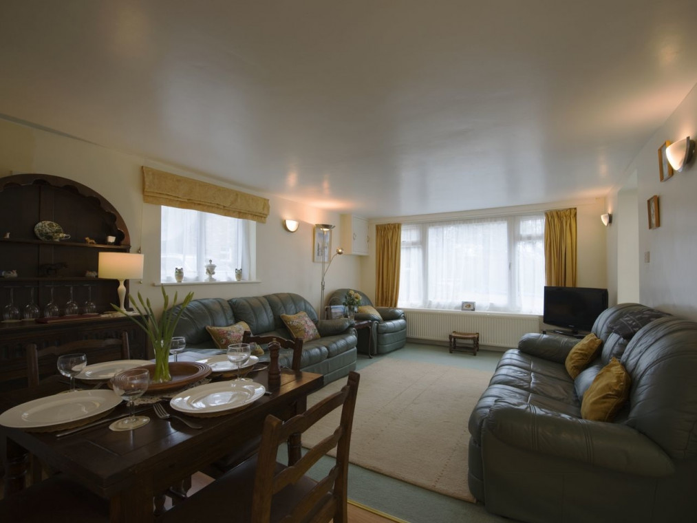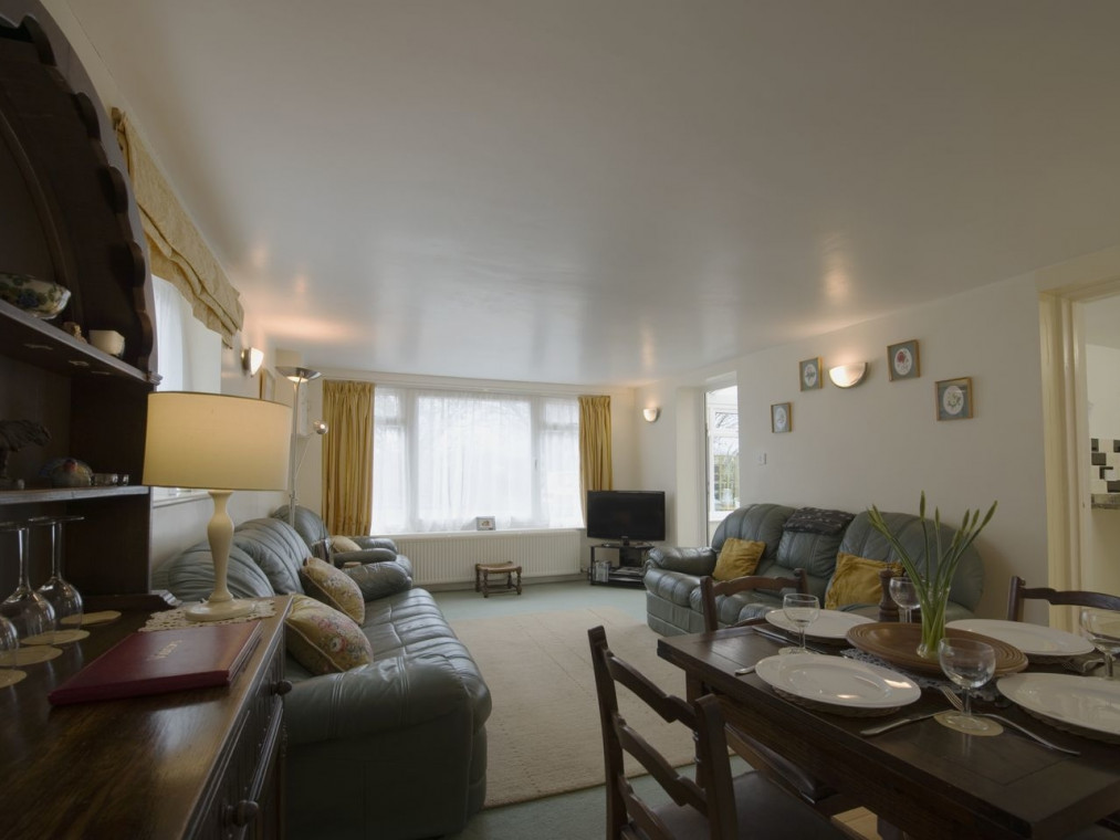 In a peaceful location on the edge of the popular Dartmoor town of Chagford, this detached cottage is a welcoming and comfortable place to stay. On the ground floor is a comfy sitting room with dining area, and on sunny days the adjoining conservatory is a lovely place to enjoy meals or maybe a Devonshire cream tea. After exploring the surrounding Dartmoor hills, the steep stairs up to the two peaceful double bedrooms are a welcome sight. The small garden with table and chairs is a tranquil spot for sitting out, with a field next door where energetic children and dogs can let off steam to their hearts’ content. There is lots to do in the area: perhaps a spot of shopping in the interesting little shops of Chagford, a hearty pub lunch in the riverside inn at Fingle Bridge, walks and cycle rides across dramatic Dartmoor or venture a little further afield to city delights in Exeter, 17 miles away. Dial House Cottage is a relaxing base for touring Devon. Two x double bedrooms (one king size, can convert to 2'6" twin) a travel cot is available. Bathroom with corner bath, separate shower, WC, basin. Downstairs sitting room with dining area. Kitchen. Utility room. Conservatory. Amenities for Rental Central heating Microwave, fridge-freezer, tumble dryer, washing machine, dishwasher, TV with DVD, WiFi, Fuel and power inc. in rent Bed linen and towels inc. in rent Cot and highchair available on request, Off road parking for two cars Barbecue Up to three well behaved Pets are welcome provided they are good with livestock and farm animals which are in surrounding fields Pub less than 1 mile from property.