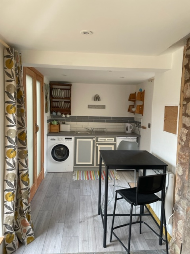 Outside there is a pretty garden area and a further barn which houses the washing machine and tumble dryer. You can also store bicycles in there if you need to. There is an outdoor washing line and ample secure space for two vehicles.