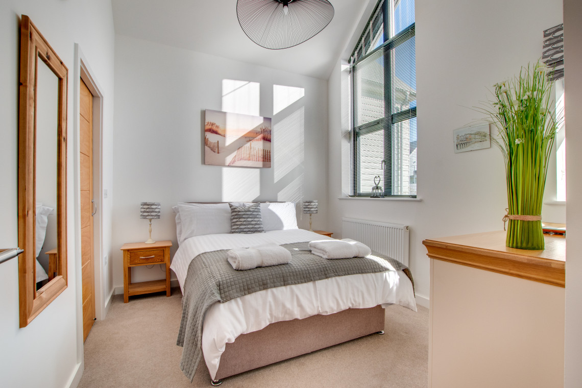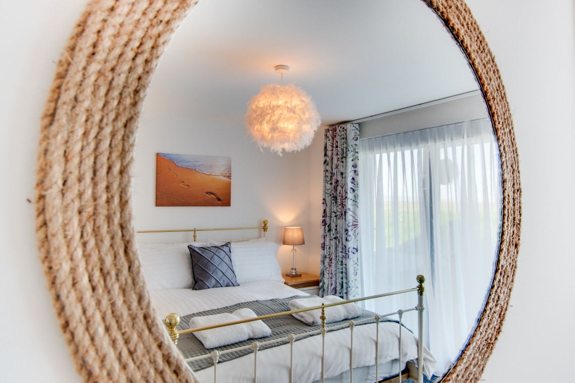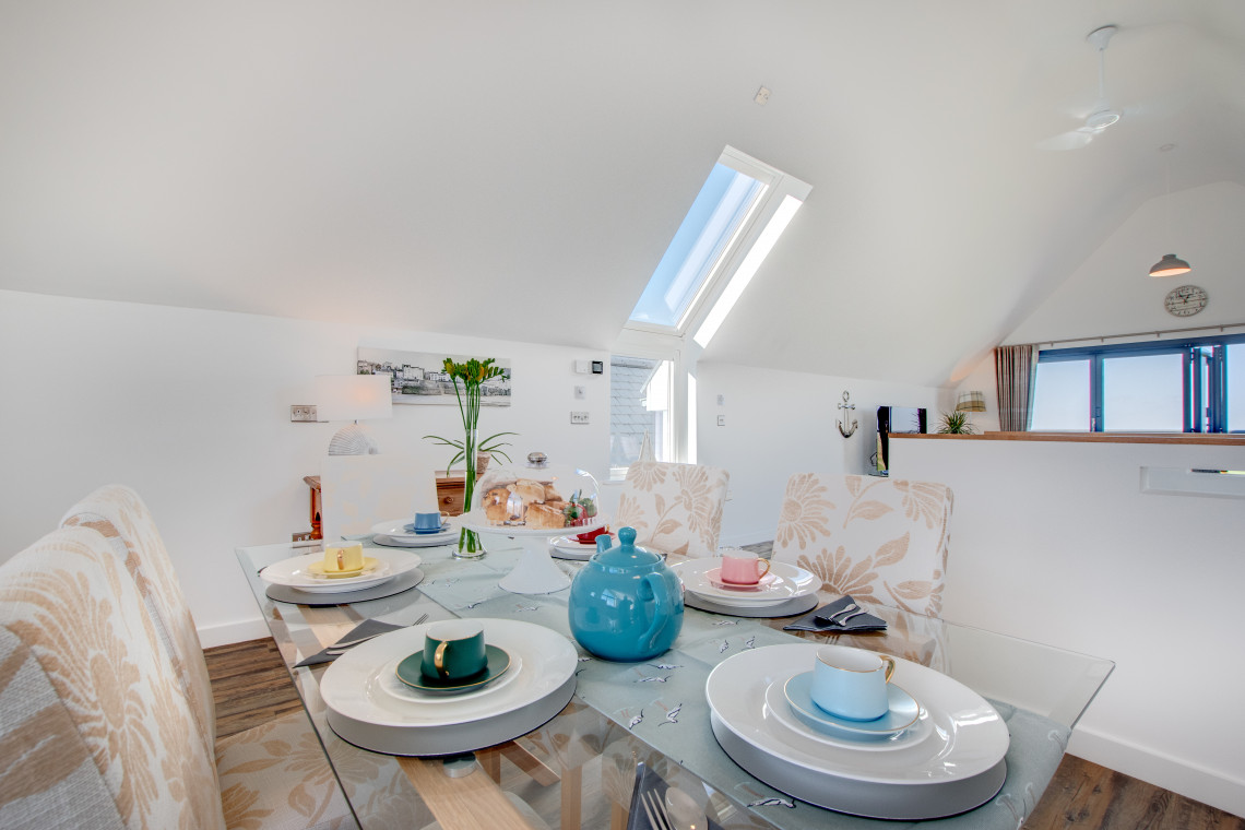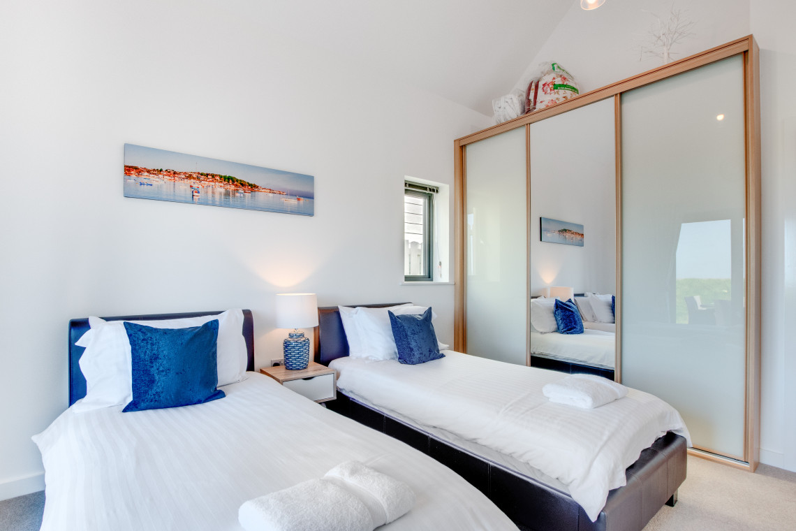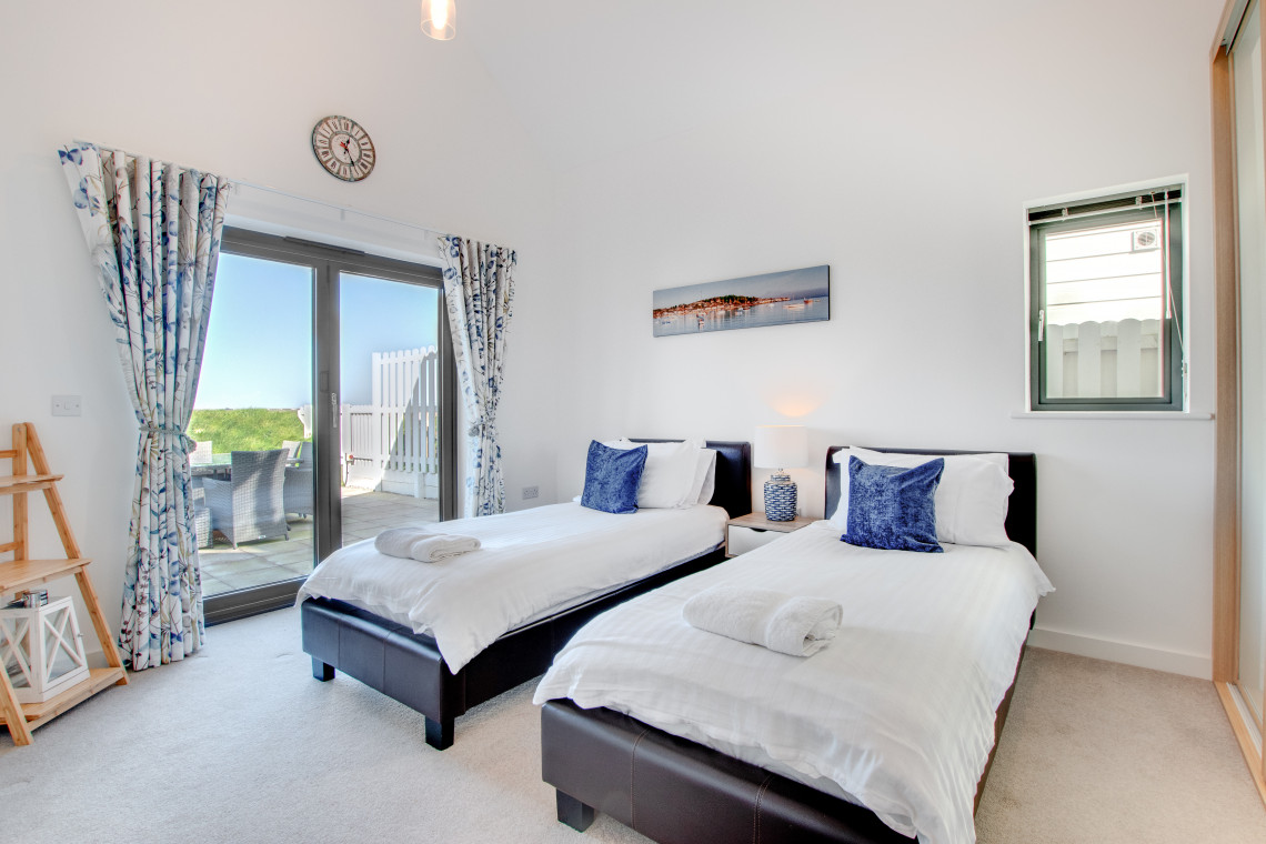 - Rooms: 3 bedrooms, 2 en suites with shower, washbasin, heated towel rail and WC. Snug with TV. Family bathroom with bath, shower over bath, WC, basin. Kitchen/ lounge/ dining area with seating, dining table, French doors to balcony with bistro seating.
