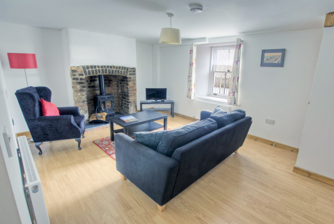 Rear entrance into fully fitted Kitchen, dining area with table and chairs. Cosy Lounge, original feature fireplace with wood burner.