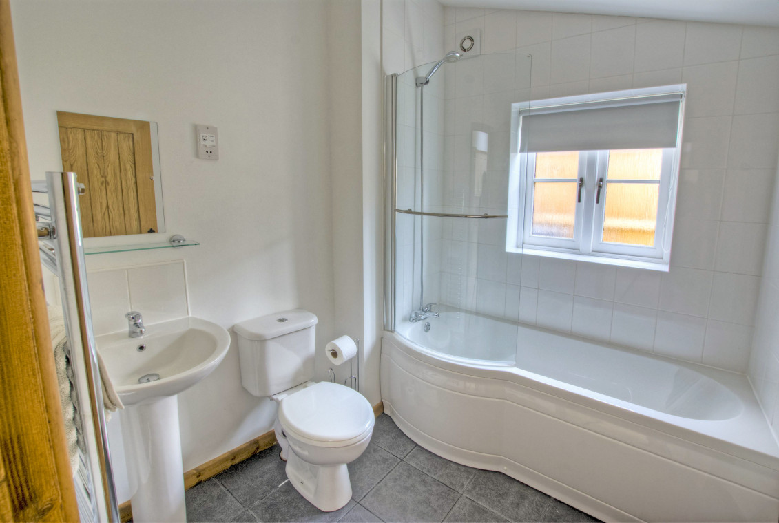 Ground floor Bathroom: Bath, over-bath shower, basin, WC, heated towel rail.