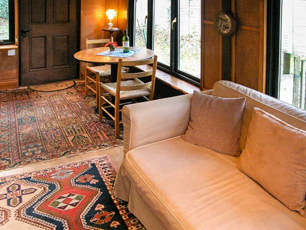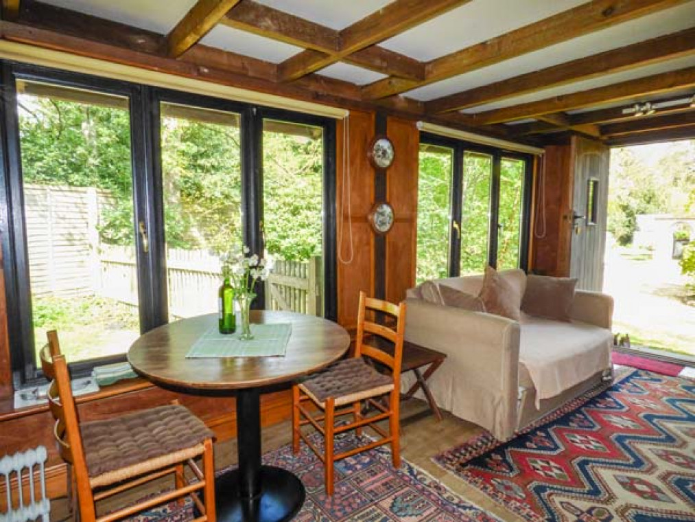 A delightful, single-storey, unique detached timbered chalet, in the grounds of the owner's house, in an idyllic location in the hamlet of Linwood, in the heart of the New Forest National Park. Surrounded by ancient woodland, this cosy little Hampshire cottage has a rustic quality which will make you feel truly away from it all. The chalet has a quirky interior with characterful features including a warming antique woodburner, perfect for cooler evenings, as well as a comfortable bedroom with en-suite shower room. You can literally walk straight out of the gates right into the forest, and take one of the numerous bridleways or footpaths from where you're sure to see wild ponies, cattle and deer. There is also a super pub serving good food and real ales close by. Should you tire of the forest, within an easy drive are the National Motor Museum at Beaulieu, the ancient cathedral city of Salisbury, or the attractions and beaches at Bournemouth. A lovely New Forest chalet in a superb location: a relaxing holiday base all year round. All ground floor. One double bedroom with en-suite shower, basin & WC. Open plan living area with simple compact kitchen area, dining area & sitting area with sofa bed & woodburner. Amenities for Rental Electric heaters in bedroom & bathroom with woodburner in sitting area Two-ring electric hob, combi microwave/oven, fridge, TV with Freeview, DVD Fuel, power & logs for woodburner inc. in rent Bed linen & towels inc. in rent Off road parking for one car Rear garden with patio & BBQ Two well-behaved dogs welcome Sorry, no smoking Visitors welcome to bring their own horses - paddock, stabling & menage available, by prior arrangement with owner Shop 4 miles, seasonal camp site shop 1 mile, pub 8 mins walk Note: Owner has dogs Note: Cottage is accessed via unmade gravelled forest track & is unsuitable for low suspension vehicles or those unsteady on their feet Note: There is no mobile phone signal at the property Note: Max 2 adults and 1 child.
