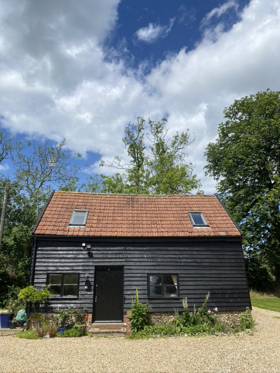 Gorgeous studio barn located in a quiet location with your own private access to a HUGE, fenced and dog-proof sunny orchard. Good wifi. The barn has high ceilings and lots of light. There is a sitting room area with a little Everhot stove, a well-equipped kitchen, a bathroom with a large shower and a mezzanine bedroom with a handmade bed with beautiful linen and a down duvet. Close to Clare, Bury, Newmarket and Long Melford with walks on the doorstep. Please note I live on the property too so you will see me and my two poodles.