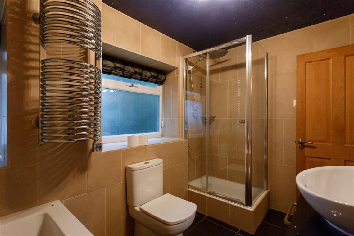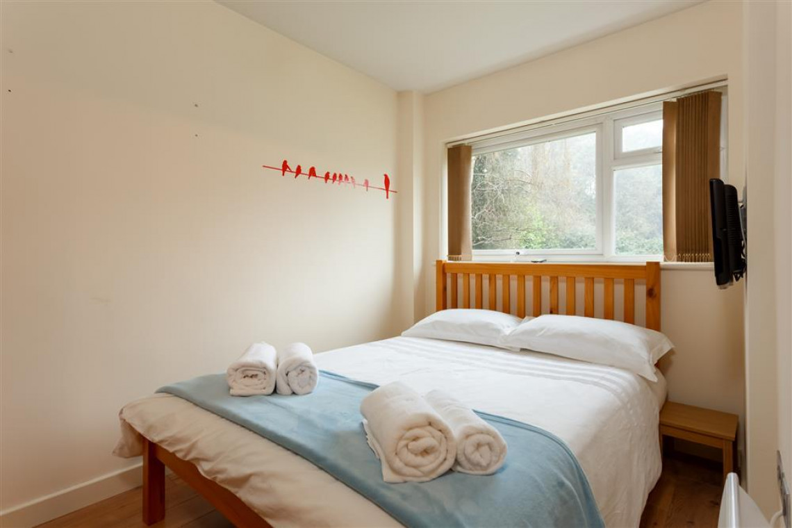 The master bedroom has a super king bed, which can also be made up as two singles. It has large windows with views over the gardens. The second bedroom has a double bed. The bathroom is well appointed with a bath and a separate shower cubicle.