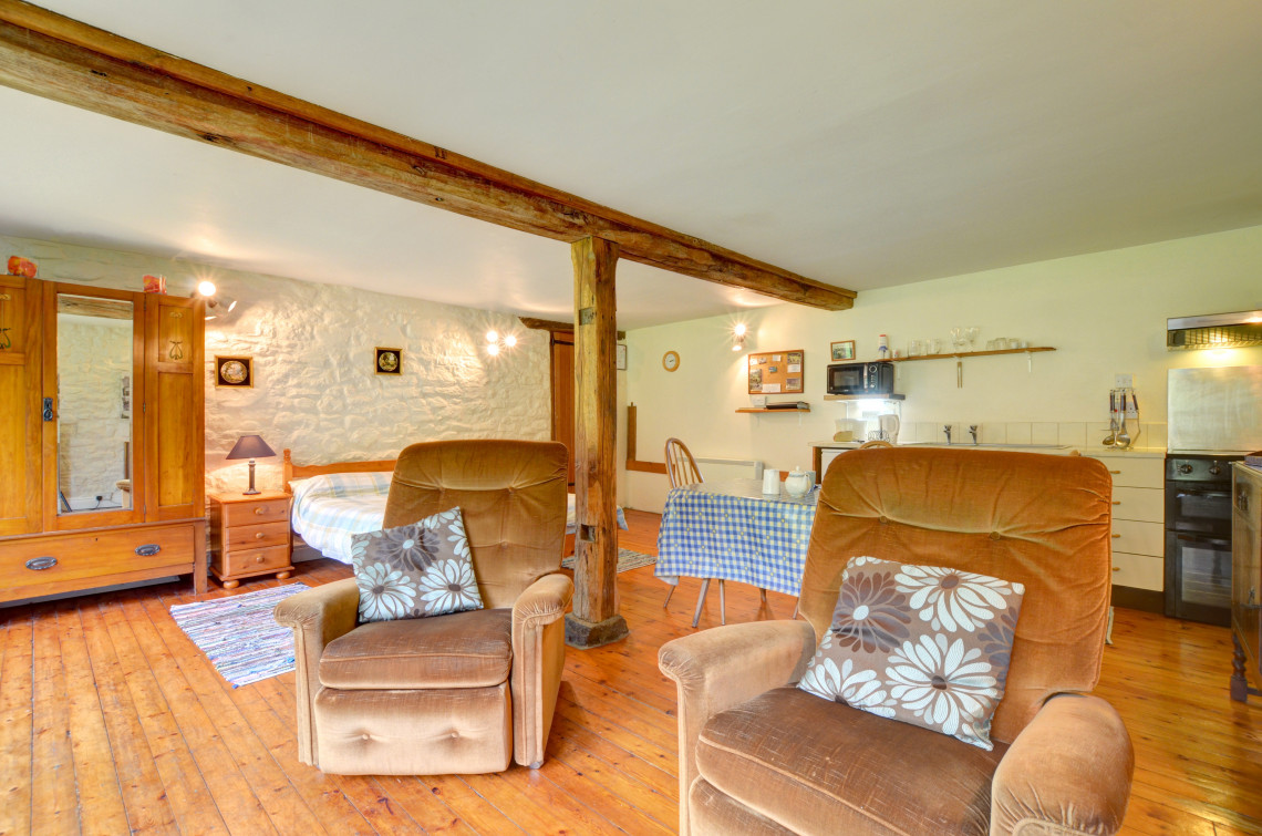 Perfect for couples looking for very reasonably priced accommodation in an unspoilt rural location, with walking and other outdoor activities on the doorstep. Formerly the farm's wainhouse, this converted barn is now an attractive single storey 'studio' close to the village of Newbridge-on-Wye. Explore the fabulous Elan Valley, visit Builth Wells and Llandrindod Wells, go canoeing, hang gliding, mountain biking and much more.