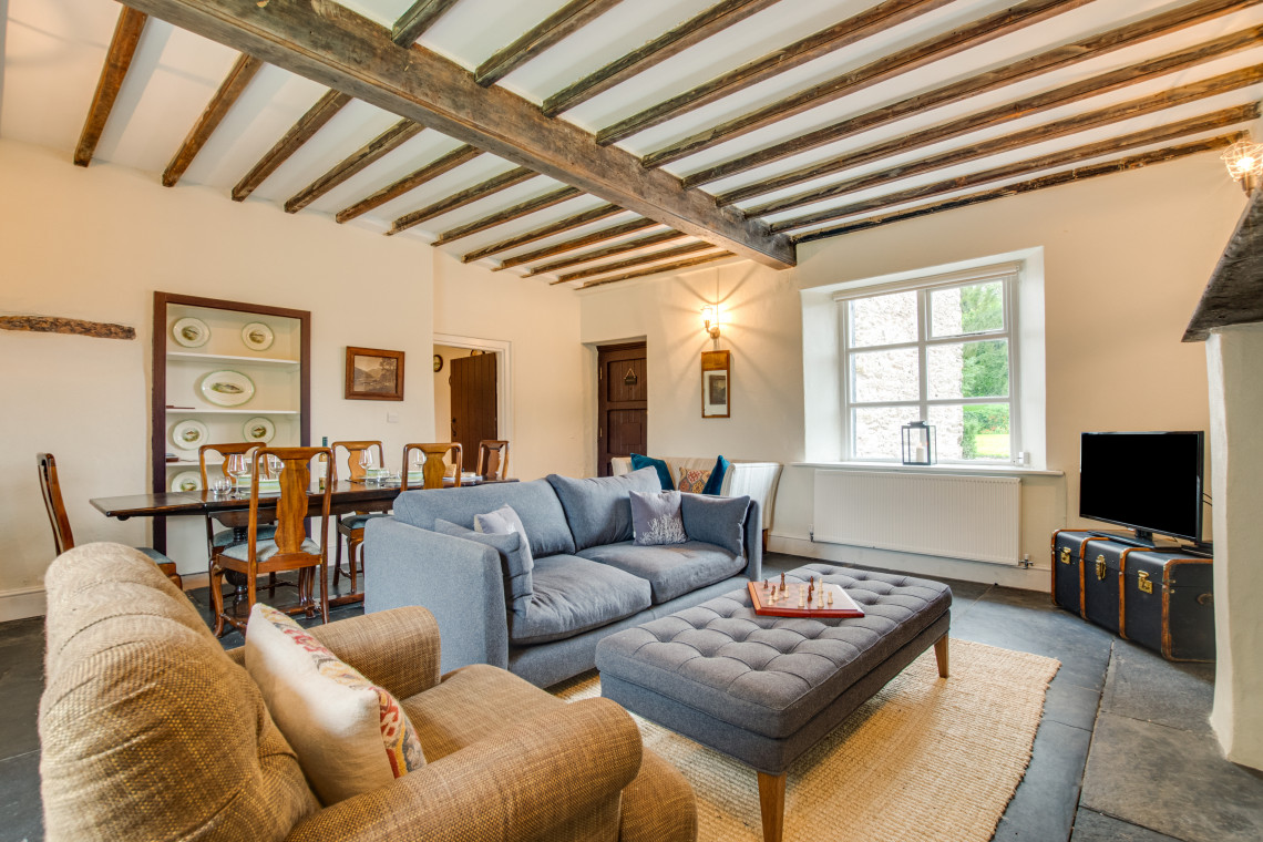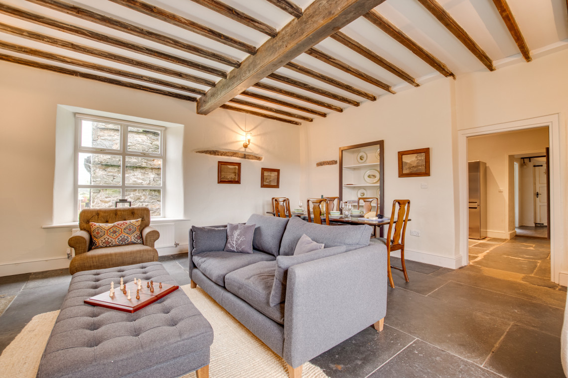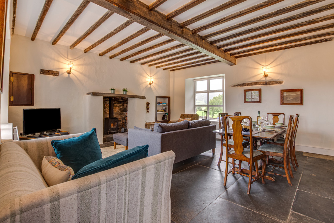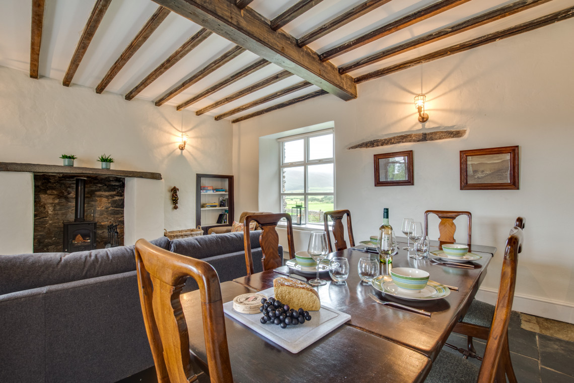 Fellview is a beautifully converted 17th Century Farmhouse which has kept many of its original features including exposed oak beams, Lakeland Slate floors and exposed brick walls. The property consists of a large open plan bedroom with 2 king size beds( an open-top room divider can split the room). There are 2 Bathrooms with a roll top bath and walk-in shower. The lounge & dining area is a magnificent space full of character with a large fireplace housing log burner, laid ready to light which is a perfect place to relax after a days exploring.