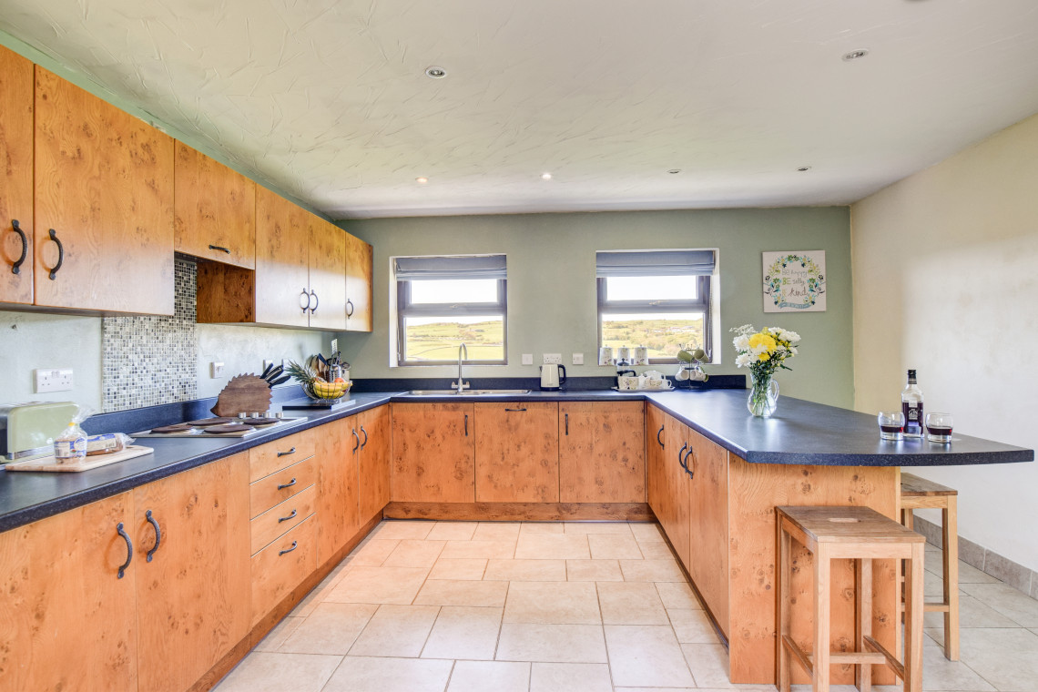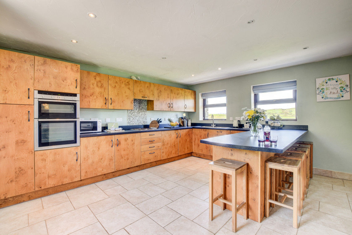 - Kitchen & utilities: Large breakfast bar. Includes an oven and separate hob, microwave, fridge/freezer, dishwasher and washer/dryer.
