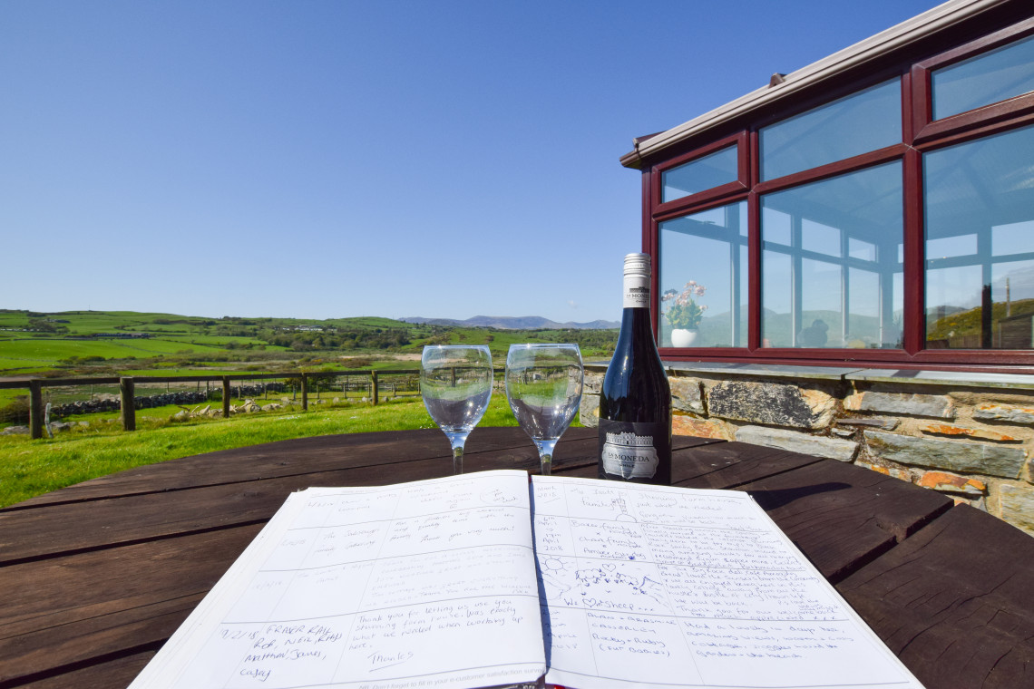 - Outside: Enclosed front garden with panoramic views of Snowdonia, coast and castle. BBQ area with picnic benches for up to 8 guests.