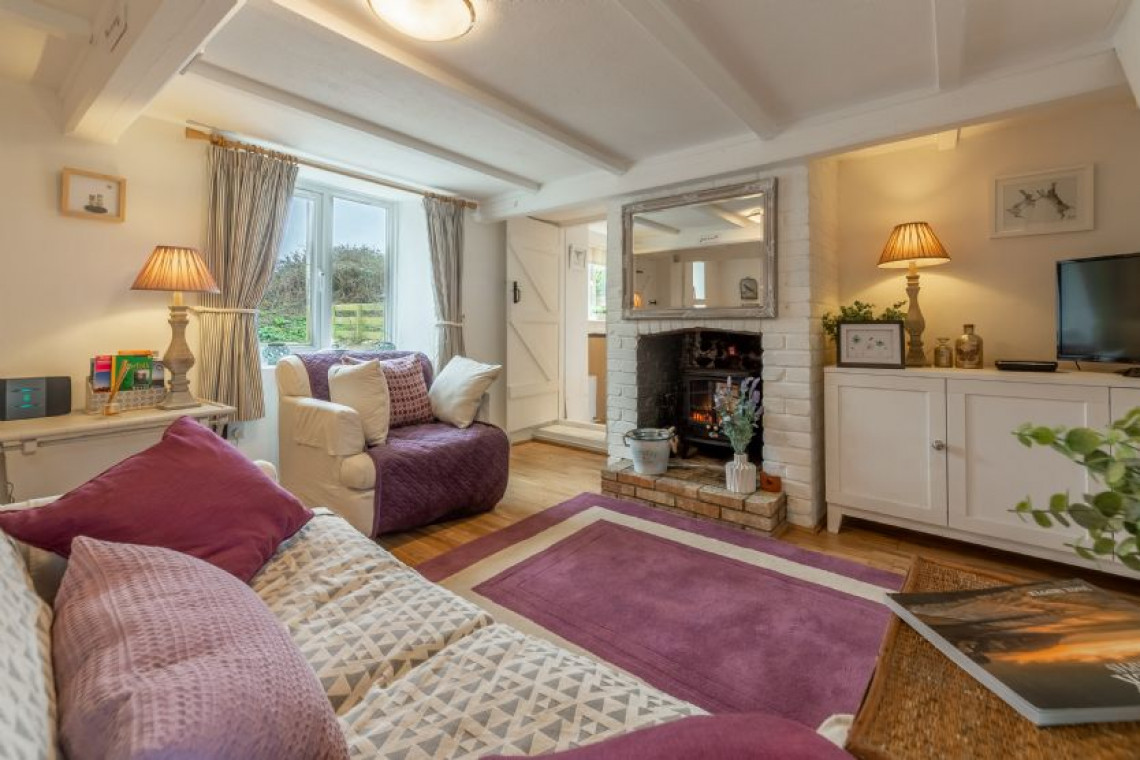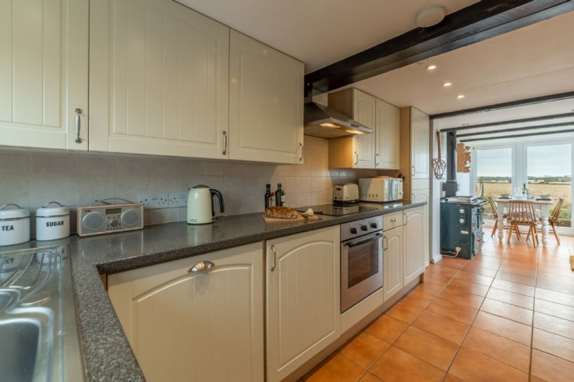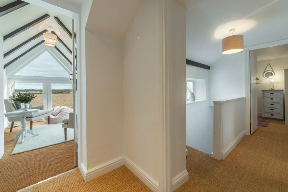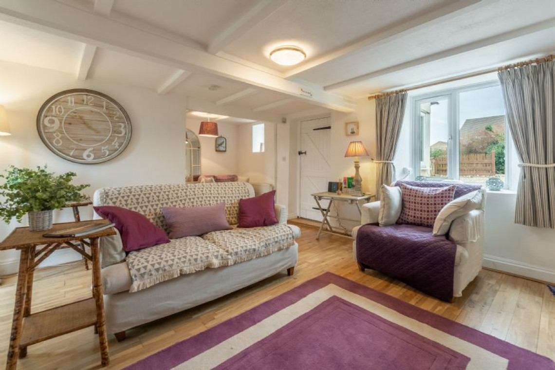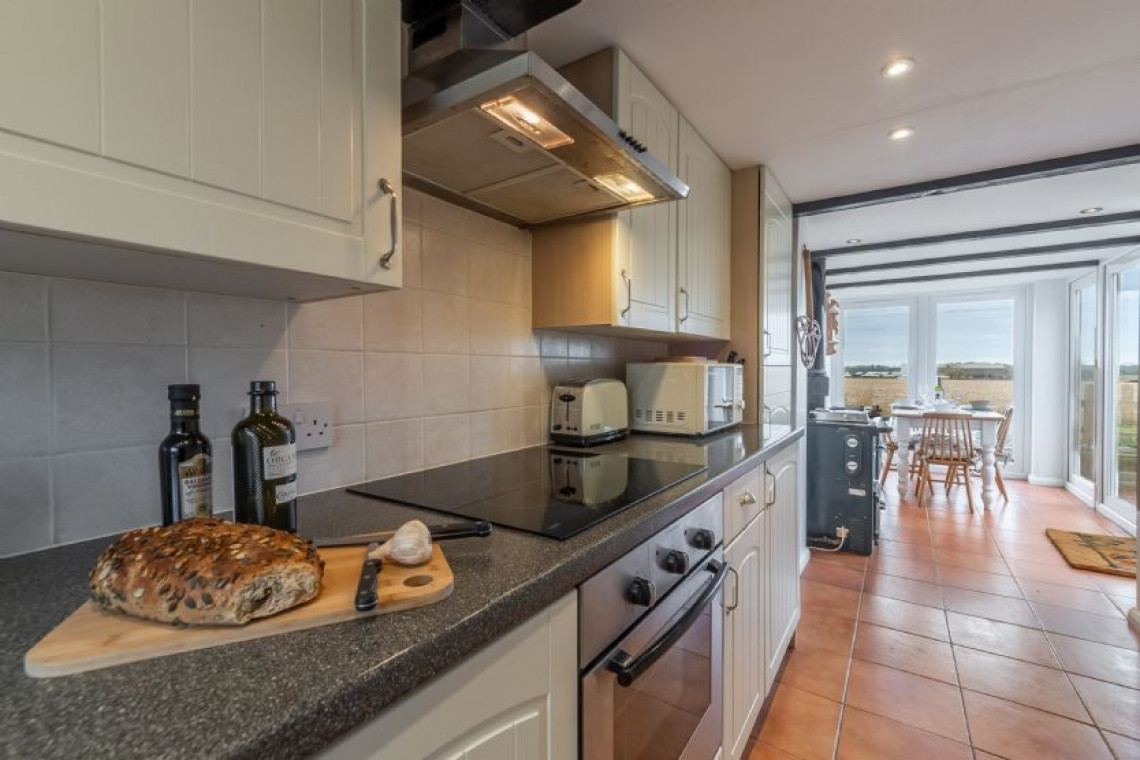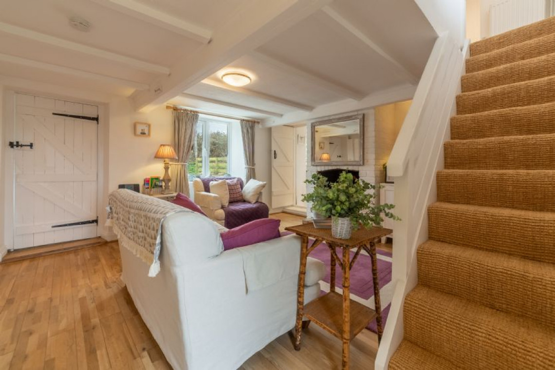 Everything about this cottage says 'comfortable and cosy' and just feels 'oh so relaxing' as soon as you walk in the door. The sitting room is as pretty as a picture and the well-equipped galley kitchen has a dining conservatory extension that leads into the sunny enclosed courtyard garden. Upstairs there are two bedrooms (a king-size and a full-size bunk room), a bathroom and a second sitting room, that rather takes you by surprise with its full size picture windows to make the most of the wonderful far reaching views across open countryside at the back of the cottage. This is a lovely place to sit and read, look through a pair of binoculars, or watch the sun go down with a glass of wine when the children are in bed.