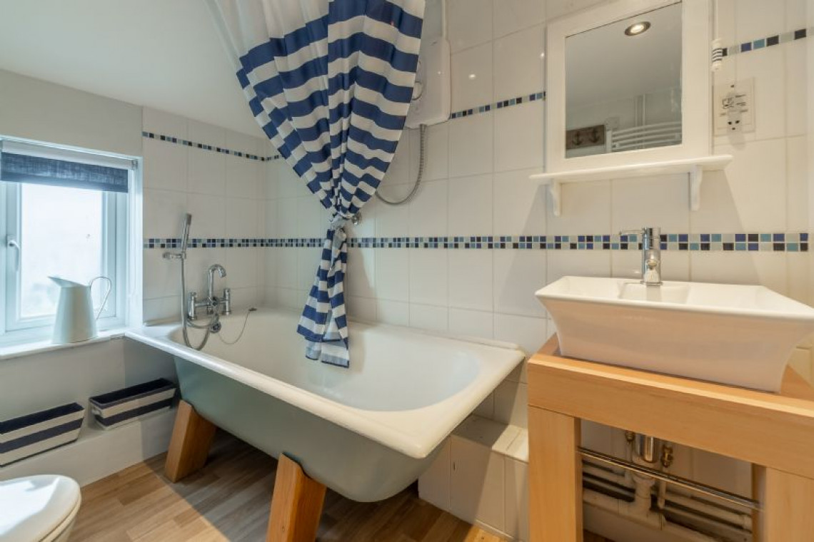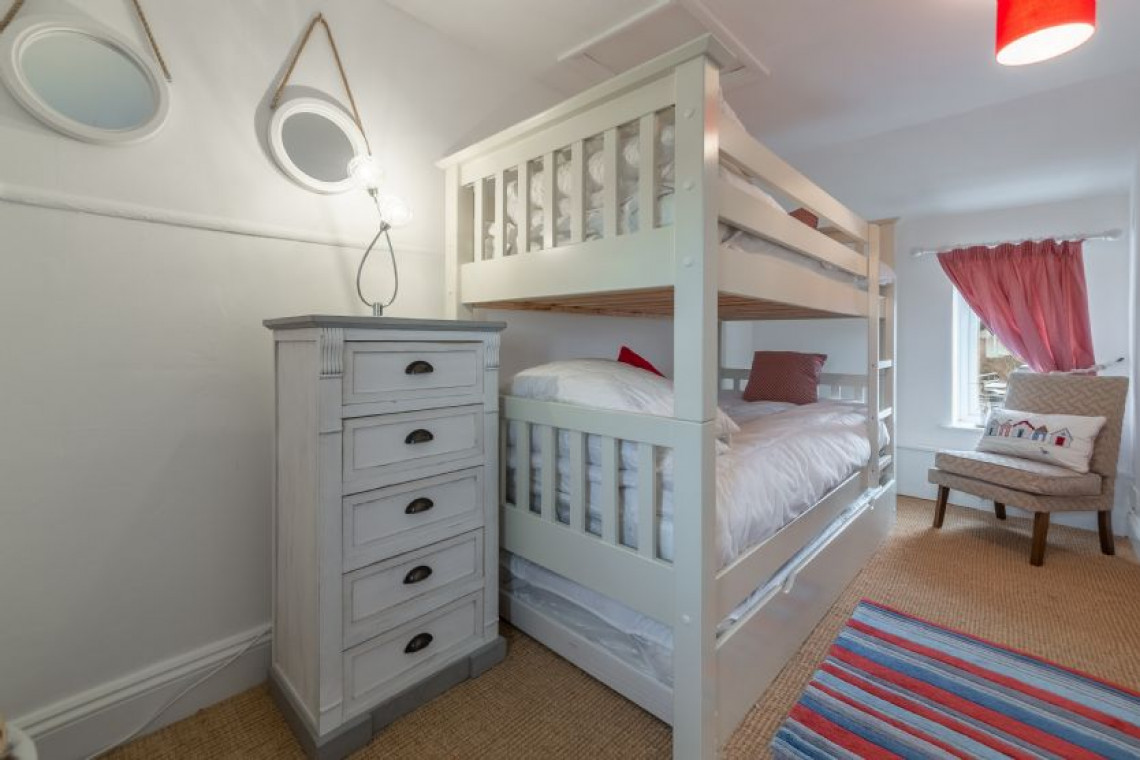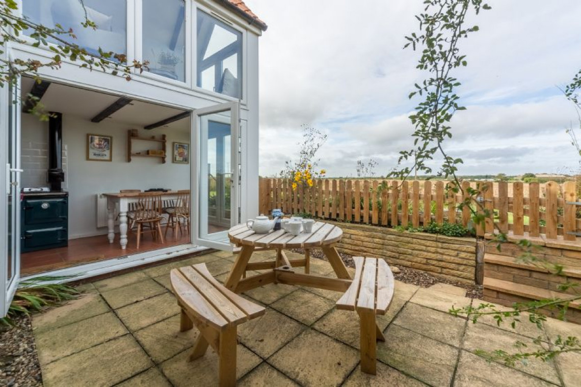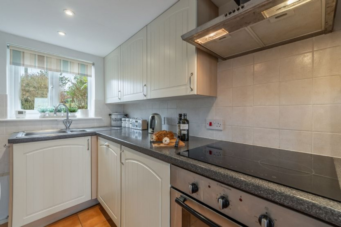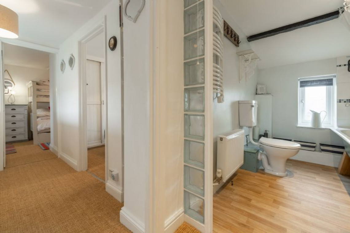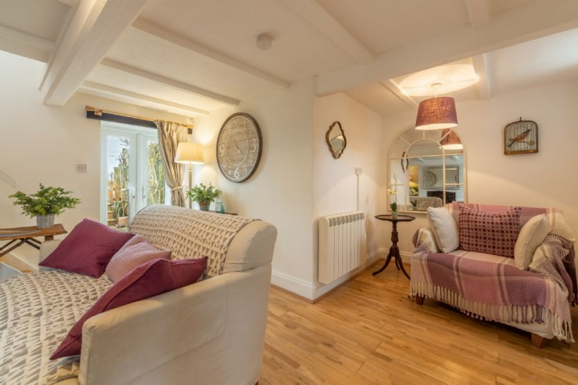 Everything about this cottage says 'comfortable and cosy' and just feels 'oh so relaxing' as soon as you walk in the door. The sitting room is as pretty as a picture and the well-equipped galley kitchen has a dining conservatory extension that leads into the sunny enclosed courtyard garden. Upstairs there are two bedrooms (a king-size and a full-size bunk room), a bathroom and a second sitting room, that rather takes you by surprise with its full size picture windows to make the most of the wonderful far reaching views across open countryside at the back of the cottage. This is a lovely place to sit and read, look through a pair of binoculars, or watch the sun go down with a glass of wine when the children are in bed.