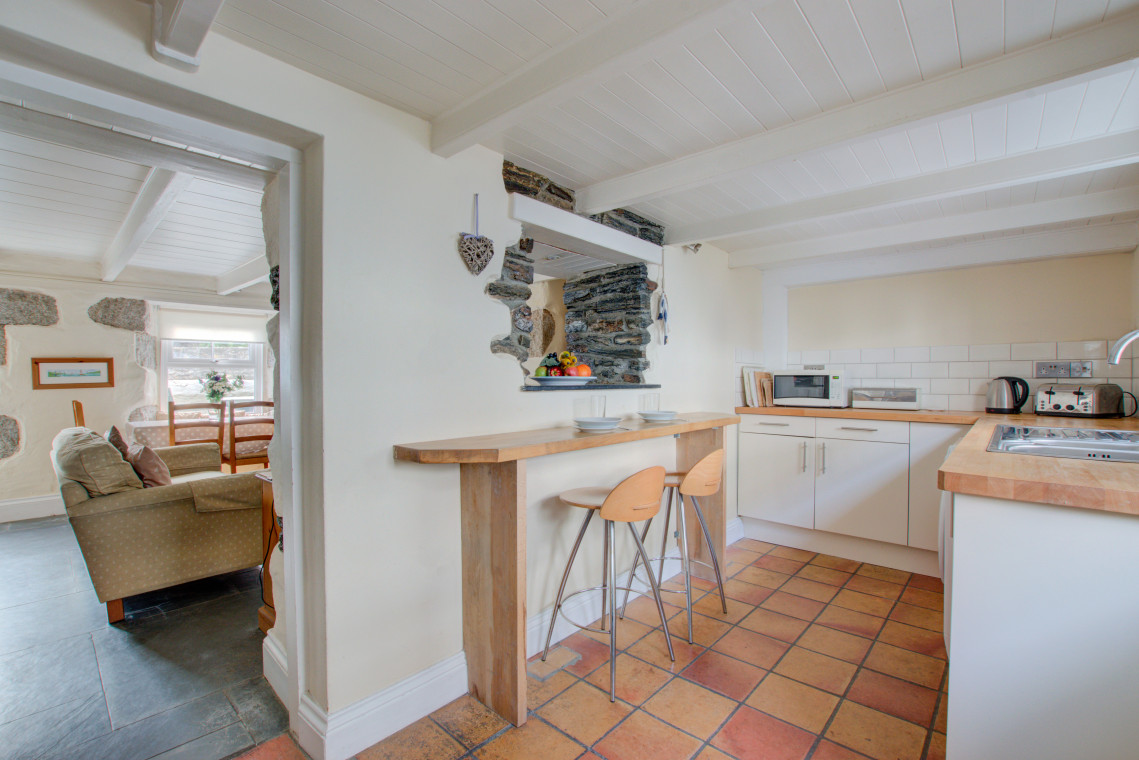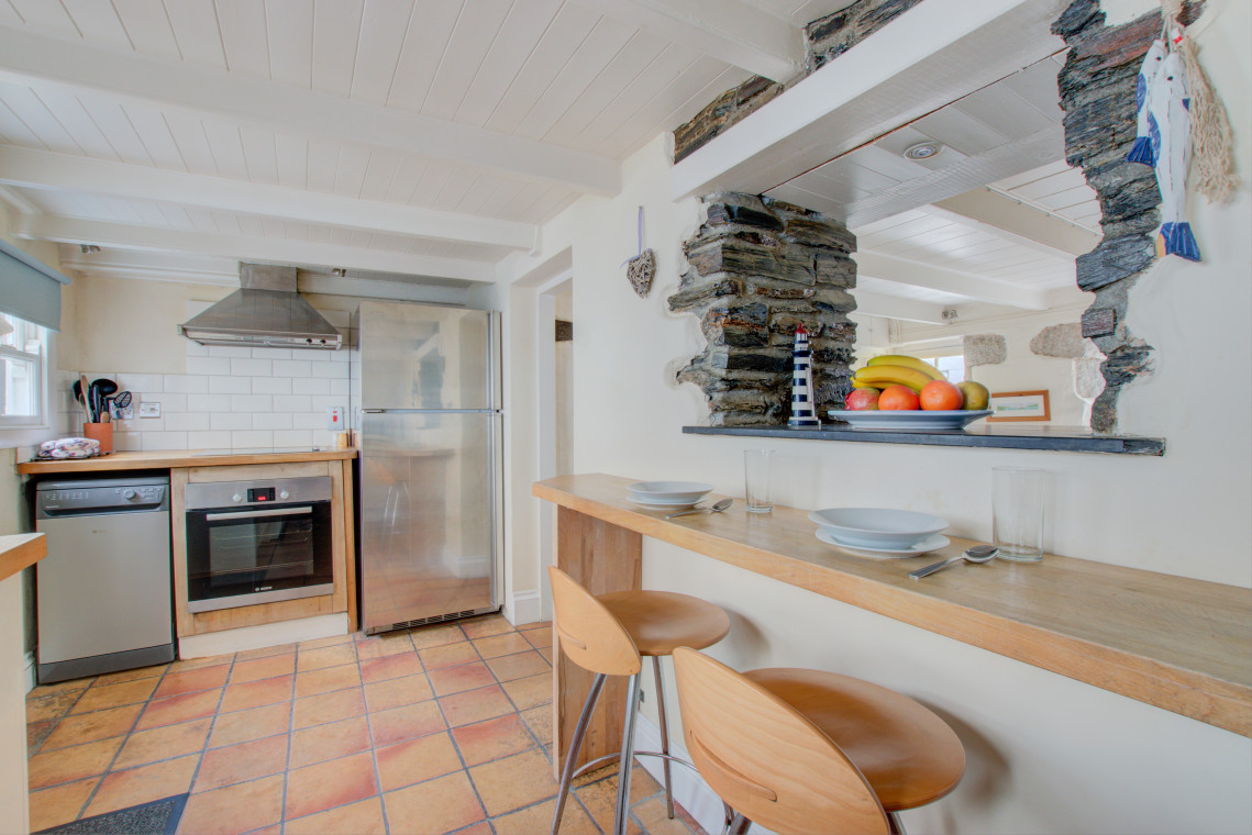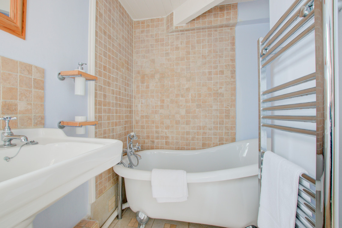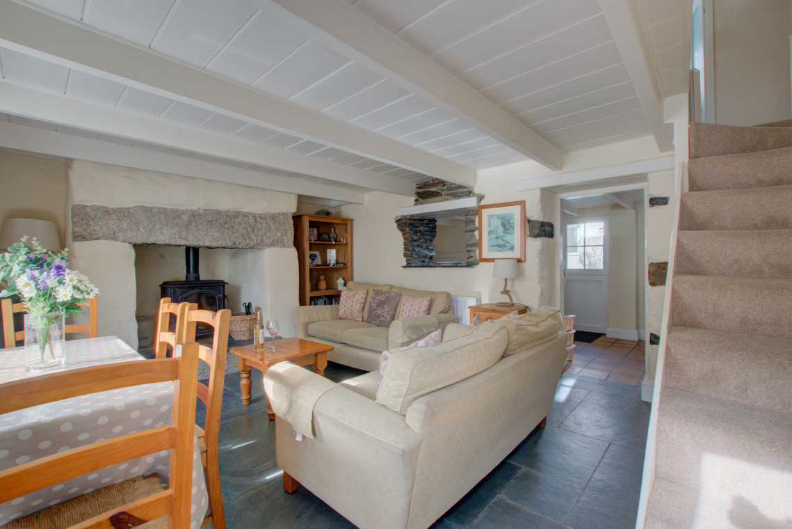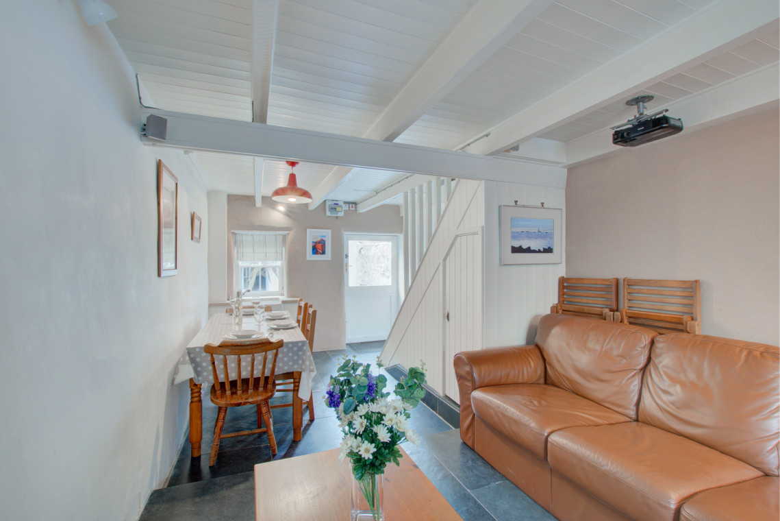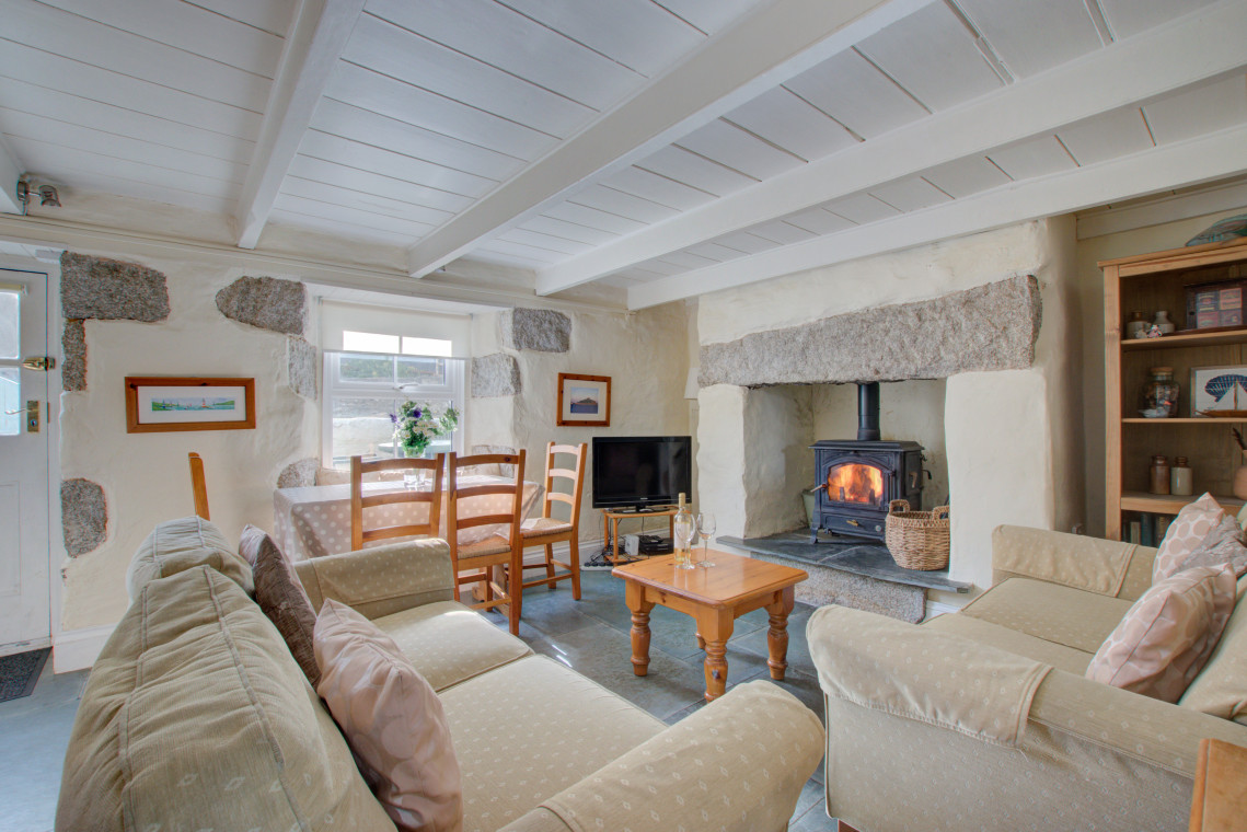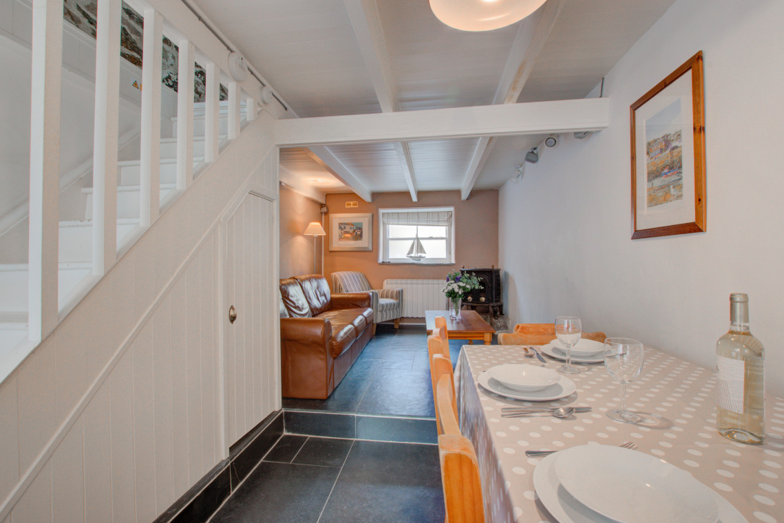 Fisherman’s Cottage is a beautifully furnished traditional Cornish cottage with a separate net loft complete with its own lounge/diner and twin en-suite bedroom, situated in a quiet pedestrian terrace, just a short walk from the centre of Porthleven with its wide variety of shops, restaurants, cafes and pubs. Sleeping six people and two dogs, the cottage has slate floors, a woodburning stove for cooler evenings, exposed beams and thick granite walls; a well-equipped kitchen and a modern bathroom. The net loft, which is accessed through a small, shared courtyard, has its own lounge/diner with a woodburning stove, and an en-suite twin bedroom with roll-top clawed bathtub.
