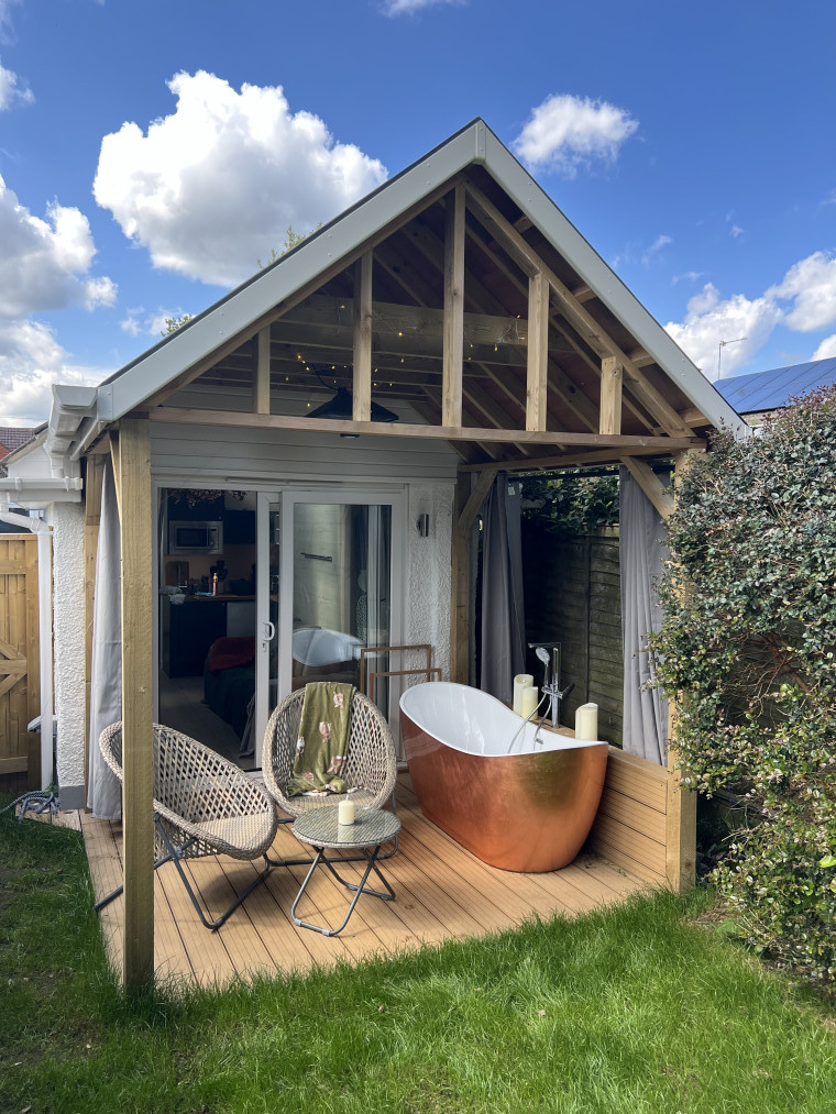 Unique, Bijou accommodation to let that is dog friendly, it has a private garden with a lovely bath outside, plenty of dog walks in the forest, River and Beach