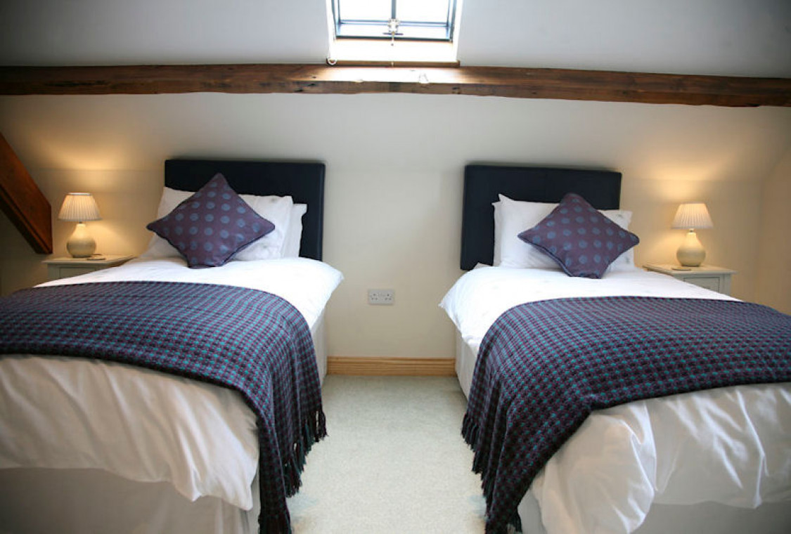 Read MoreThis two bedroom detached holiday cottage overlooks our paddocks and is rated 5 star self catering gold award. Private, secure garden and walks from the door. Downstairs the cosy sitting room has a wood burning stove, and the Dining Kitchen is fully equipped including washing machine and dishwasher - it has french windows out onto the private patio and garden. Upstairs a double bedroom with king size bed and views across the fields, also a spacious twin that has plenty of room for a travel cot, this room normally has twin beds but it can be converted to a Superking bed if required. Room in both bedrooms for a travel cot which we are happy to provide free of charge. Please note that the bedrooms have partially sloping ceilings. The upstairs bathroom has a bath with shower over and tdownstairs there is a cloakroom. Floor plans and virtual tours on the website Outside your own private patio & garden with garden furniture overlooking open fields. When in residence our pigs live not far from this cottage and you will be able to see them from the garden area - but don't worry there is no smell!! There is parking for 2 cars adjacent to the cottage. We also have several other 2 bedroom cottages - the Stables and Foldyard so if this cottage is not suitable or already booked for your dates please take a look. We also sometimes let the larger cottages on low occupancy if all the 2 bedroom cottages are booked so it is always worth getting in touch.