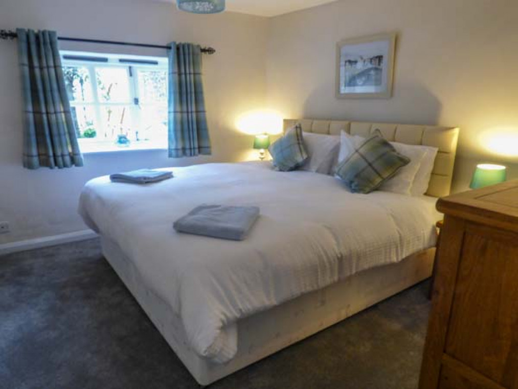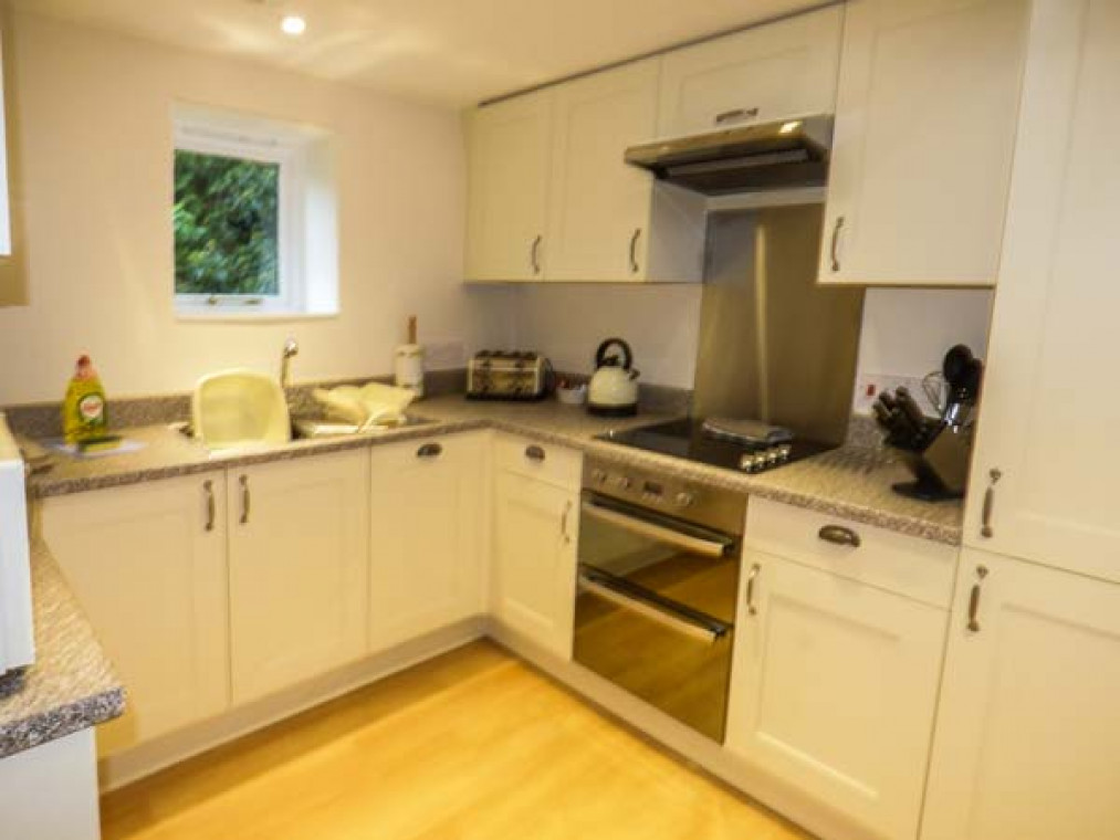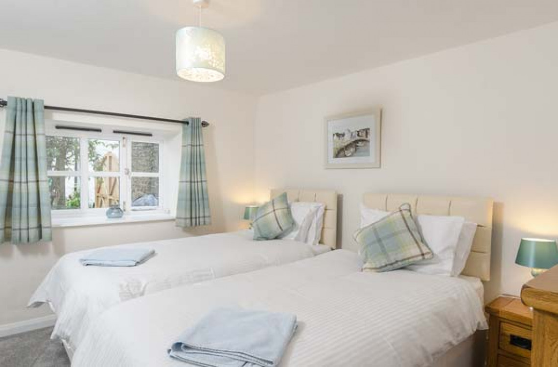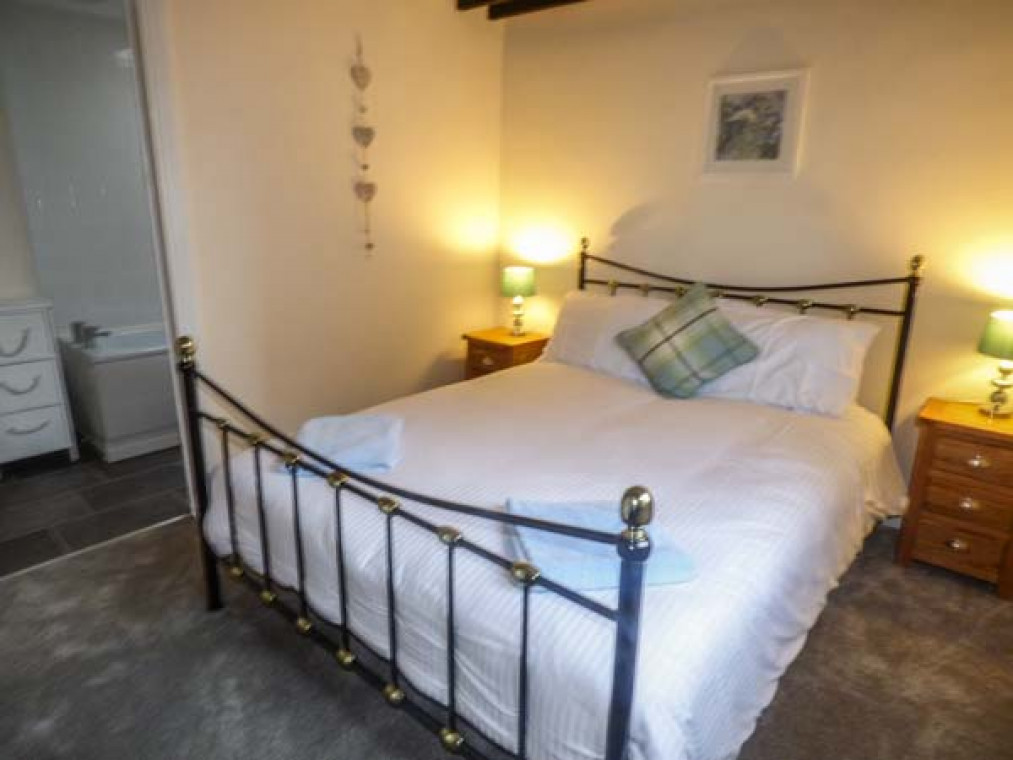 All ground floor. Two bedrooms: 1 x super king-size double (zip/link, can be twin on request), 1 x king-size double with en-suite bath, shower over, basin and WC. Shower room with shower, basin and WC. Kitchen. Sitting room with dining area and woodburning stove.