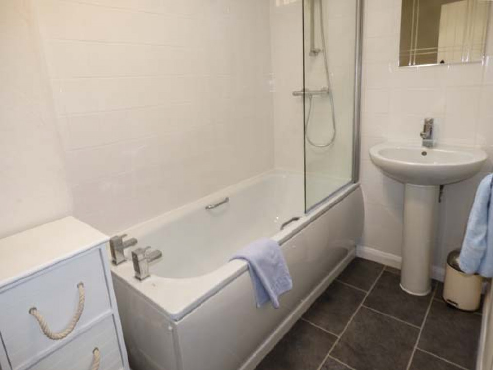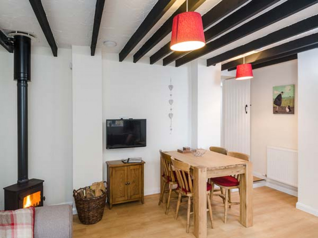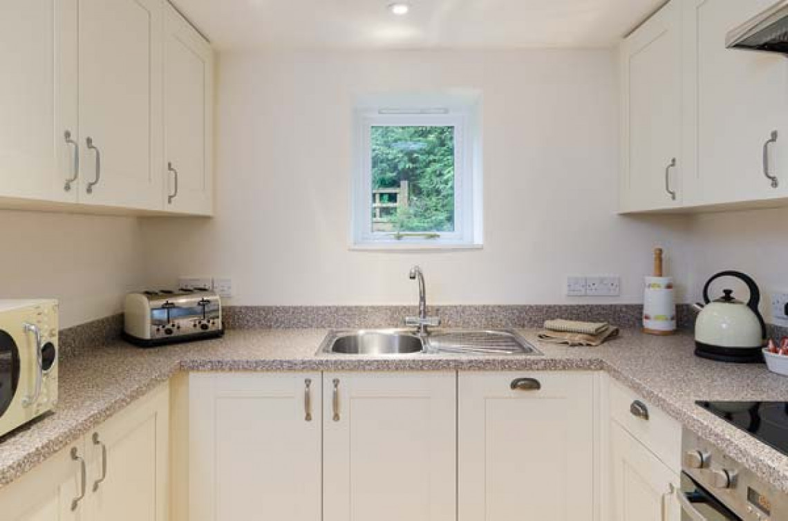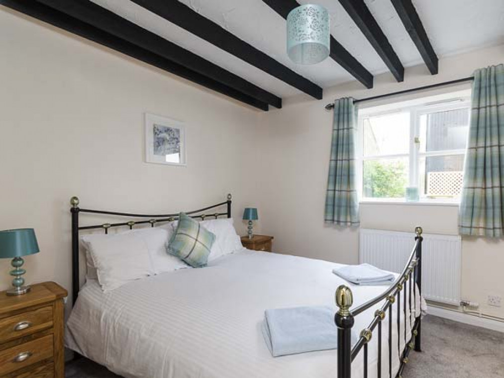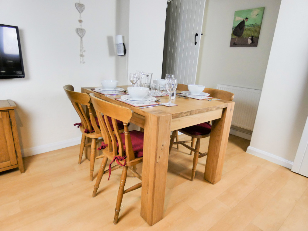 All ground floor. Two bedrooms: 1 x super king-size double (zip/link, can be twin on request), 1 x king-size double with en-suite bath, shower over, basin and WC. Shower room with shower, basin and WC. Kitchen. Sitting room with dining area and woodburning stove.