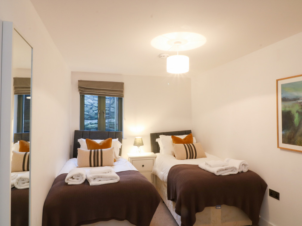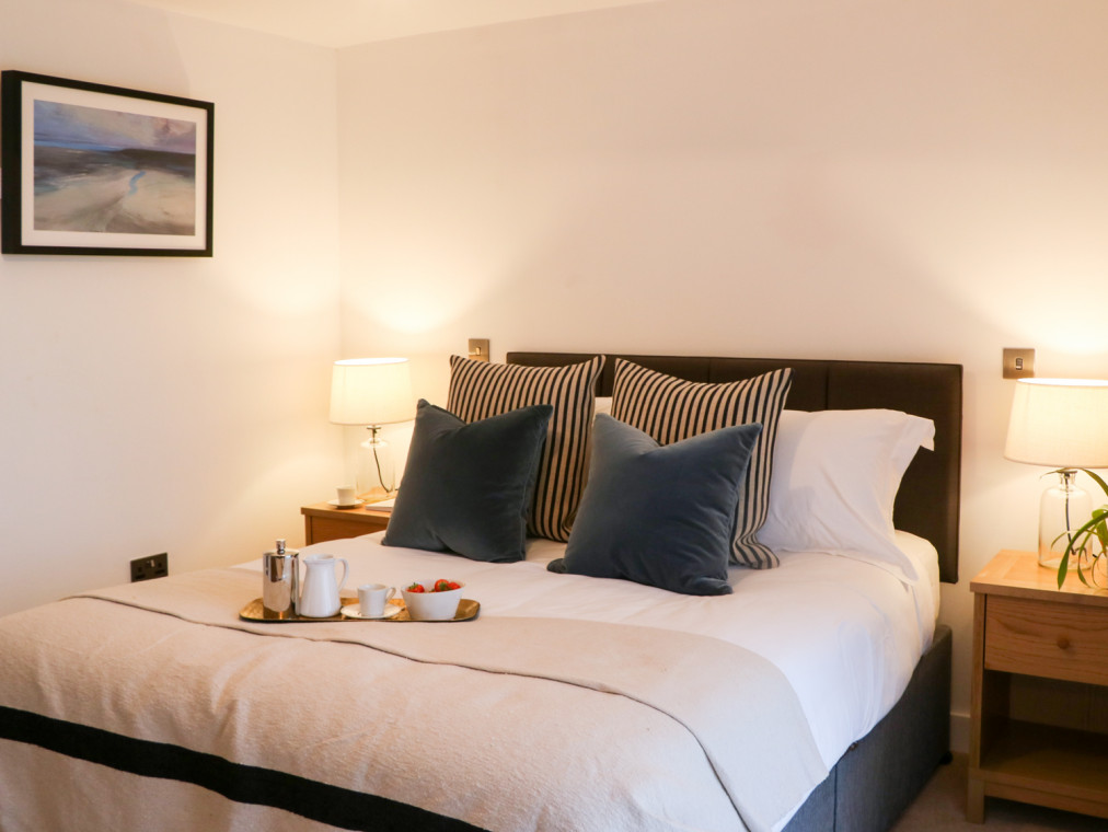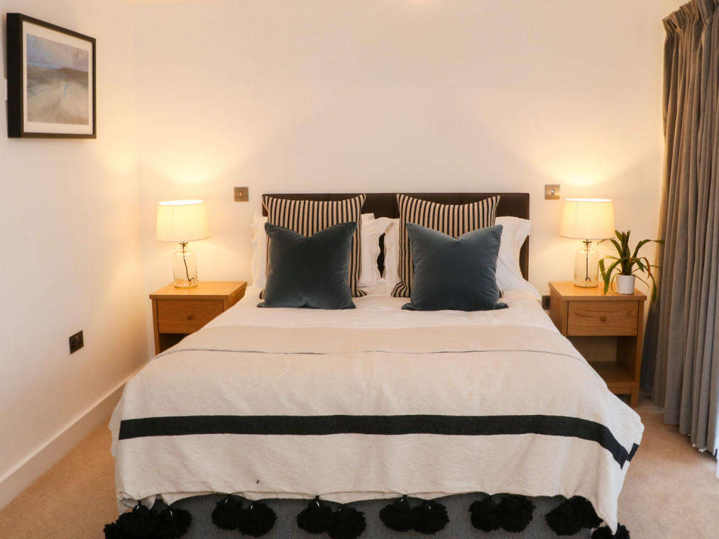 This stylish duplex apartment is situated within East Portlemouth's luxury Gara Rock development, in South Devon. In the same tasteful mould as the other properties at the complex, this apartment features a sleek and contemporary decor accessorised by high quality fixtures and fittings. On the ground floor there are two pleasing bedrooms; one king with en-suite shower room and bi-folding french doors leading out to a private patio area, as well as a twin bedroom situated opposite the main family bathroom. Upstairs there is an open-plan living space with modern kitchen, dining and sitting areas, featuring an adjoining balcony overlooking the sea below. This balcony combined with the private, south-facing patio on the ground floor allow plenty of space for sitting out and relaxing in the sun. There is also access to the communal gardens from the patio, as well as the outdoor swimming pool. Note: This property can be booked with Ref. 984709, 984710, 978714, 984711, 978715, 984706, 984707, 984712, 984713, 978716, 984703, 984704, 978719, 978720, 984705, 978717, 984714, together they can sleep 86. Reverse-level duplex apartment. Two bedrooms: 1 x king with en suite with shower, WC and basin, 1 x twin. Bathroom with bath, WC and basin. Kitchen. Lounge/diner. Amenities for Rental Underfloor heating Electric oven and hob, fridge, freezer, washer/dryer microwave, dishwasher TV, DVD, WiFi Fuel and power inc. in rent Bed linen and towels inc. in rent Off-road parking for 1 car Balcony off master bedroom and balcony off lounge/diner, as well as access to communal gardens One well behaved pet welcome Cot, highchair and stairgate available Sorry, no smoking Shop and pub are 1 mile away if travelling by passenger ferry to Salcombe Note: Guests have exclusive, all-year-round access to indoor swimming pool, Jacuzzi, sauna and steam room From the end of May to the end of September guests also have access to the outdoor swimming pool with changing rooms, showers and sunbathing terrace with loungers There is also a spa (treatments extra) available from 19th October 2018 and cinema room which is accessible by all guests Note: The Gara Rock Hotel offers a contemporary restaurant for informal dining Note: Due to ongoing upgrades to the development please see the notes at the bottom of this web page for further information.