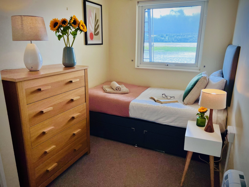 Read MoreLocated in Porthmadog, Glaslyn View is the perfect dog friendly base to explore the Snowdonia National Park and the Llyn Peninsula. A spacious and contemporary two bedroom property (sleeps 3 plus 1 infant) overlooks the Glaslyn Estuary, with uninterrupted panoramic views towards the Merrioneth Hills beyond. Watch wading birds and steam trains from the comfort of the private and secure balcony, the ideal place for you and your dog/s to relax. Walking distance to the thriving high street with independent shops, cafes and dog friendly pubs. Perfectly located for a day out on the Ffestiniog and Welsh Highland railway. A pleasant walk, or a short drive to a multitude of beaches and coastal walks. Our doggy welcome pack includes bowls, balls and delicious treats (human ones too!). We also provide a comprehensive guide to days out with dogs in the local area, listing dog friendly places to visit and to eat out. There is an excellent boarding kennel nearby, owned and run by the President of the Guild of Dog Trainers. they offer doggy day care if you wish to explore without your dog and leave them in safe hands.