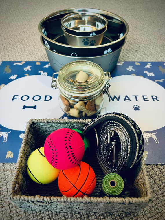Provided toys leads treats and bowls (more than I would expect) I thought was a lovely little touch to such a lovely accommodation. Not only made us feel welcome but our pup too :)