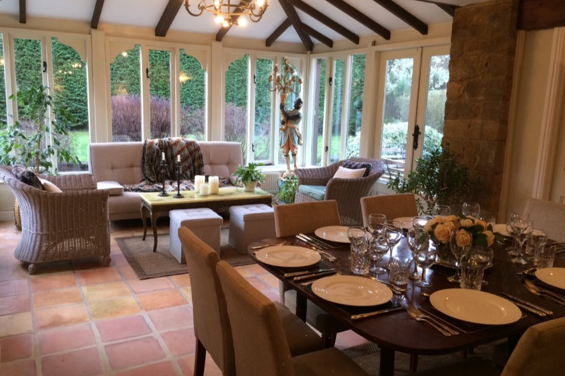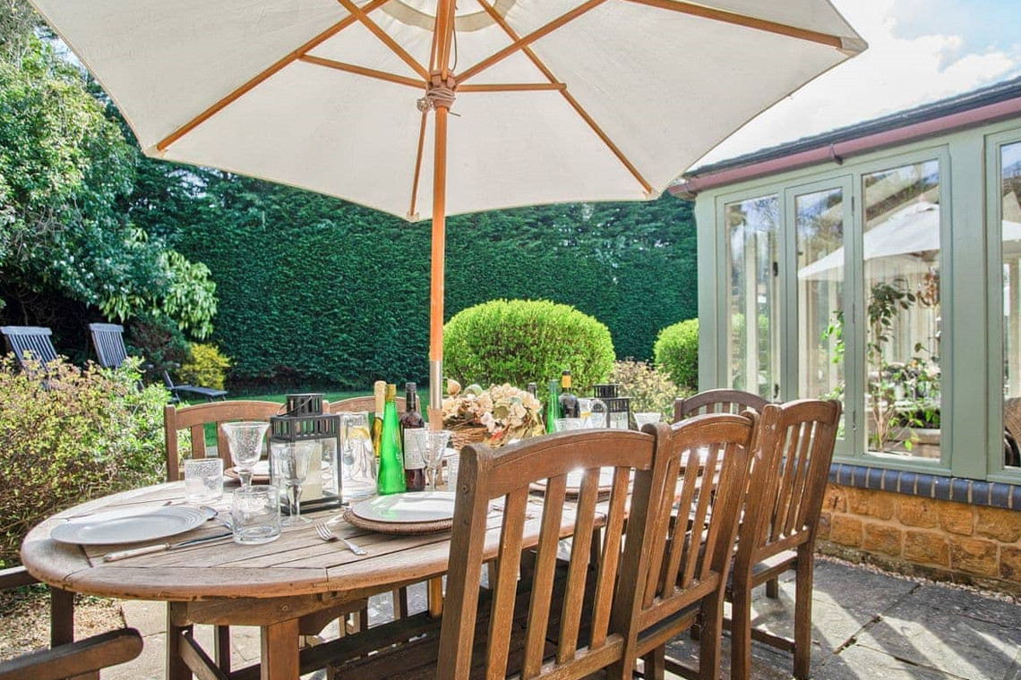 Read MoreGorgeous Village Barn is presented to a high standard, having been recently refurbished to create a relaxing & cosy atmosphere for up to 8 guests & 4 dogs. It is traditional in style with beamed ceilings on the ground floor and every room having french doors with access to the garden/terrace areas. The Barn has a sitting room/snug, dining room & conservatory with a deep buttoned sofa/bed, shaker style fully equipped kitchen, 3 bedrooms (2x king size, Ix double) all over looking the garden, 2 bathrooms, ground floor w.c/cloakroom/utility room with separate washing machine & dryer. The walled garden is south facing and very safe/secure for dogs as it is well enclosed with 6 ft high fencing all the way around with bushes and trees in front of the fencing. The garden has an outdoor dining table for up to 8 guests, cream parasols, serving table, herb planters, BBQ (gas) and also two relaxed seating areas (one shaded) & reclining loungers.