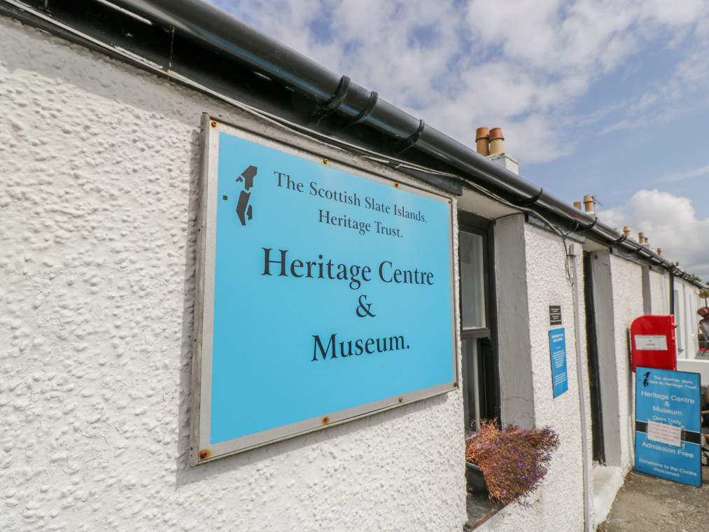 Balvicar 1.9 miles. This quaint, mid-terrace cottage is situated in a remote location, in the small village of Ellenabeich, near Balvicar on the Isle of Seil, Scotland. Internally, the property has been renovated to provide a contemporary base for couples, friends and small families looking for a rural retreat in the peaceful countryside. Look forward to spending your evening in the open-plan living space, curled up with your loved ones and catching up with your favourite shows. The Smart TV enables people to watch TV, TV on demand and also stream from the likes of Netflix or Amazon Prime. The all-in-one music system allows for connectivity to phones, ipods and to streaming services such as Spotify if people have an account. The kitchen has everything you could need to rustle up a delicious meal for the whole family, to be enjoyed at the dining area over a well-deserved glass of wine, with a convenient dishwasher so you barely have to lift a finger to wash up! The property benefits from two well-presented bedrooms, both of which rest on the ground floor, comprising of a king-size and twin. Both bedrooms have a range of quality furnishings to store your personal items, with access to a family bathroom where you can enjoy a long soak in the tub after a tiring day. Use the enclosed garden area to the rear for sitting out in the afternoon sun with a refreshing beverage and enjoy a spot of alfresco dining. This lovely rural area of the Isle of Seil provides an escape to a peaceful location with plenty of trails for walking and cycling. Just over two miles away is the Isle of Seil Golf Club for those sporty types, with easy access to the coast and a number of lakes and rivers for all manner of watersporting activities, including fishing, sailing and kayaking. For garden enthusiasts, all 20 Glorious Gardens of Argyll and Bute are within easy reach of the property. An Cala garden is only a 2 minute walk from the cottage. Further afield is the resort town of Oban, which offers a large selection of pubs and restaurants for that fine dining experience, whilst the centre also offers a choice of shops and supermarkets for all of your amenities. Discover a number of historical attractions, including McCaig's Tower, which dates back to the 19th century and provides panoramic views across Oban Bay. Dunollie Museum, Castle and Grounds and guided tours of Oban Distillery are two of the many attractions available in Oban. Return to Grebe Cottage for a relaxing evening with your loved ones in this contemporary dwelling. All-ground-floor. Two bedrooms: 1 x king-size, 1 x twin. Bathroom with bath, shower over, basin and WC. Open-plan living room with kitchen, dining area and sitting area with woodburning stove Amenities for Rental Electric central heating with woodburning stove (starter pack included) Electric double oven and hob, microwave, fridge, dishwasher, washing machine Smart TV with access to Netflix or Amazon Prime, a DAB+/FM Bluetooth internet stereo all-in-one smart music system with Spotify connect Superfast broadband WiFi Books and games High chair available Fuel and power inc. in rent Bed linen and towels inc. in rent Off-road parking for one car Enclosed lawned garden with shed, barbecue and seating area One well-behaved pet welcome Sorry, no smoking Pub 0.1, Shop 0.1, Restaurant 0.1, Coast 0.1 & Beach 0.1miles.