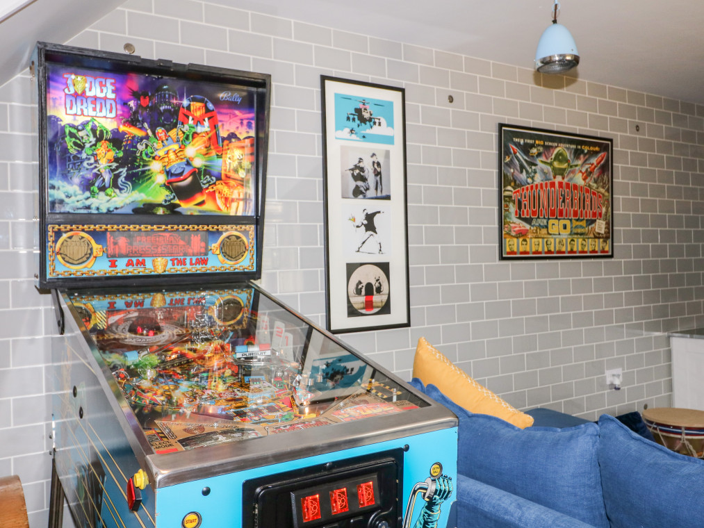 Situated in the heart of the Cotswolds, in the thriving town of Winchcombe, Gloucestershire, is this stunning retro- vintage cottage. Internally, Grumpy Goose's Cottage has been renovated to provide stunning accommodation for 2 people. Boasting a quirkily decorated open-plan living area with amazing attention to detail including an original pin ball machine!!. Settle down on the comfortable sofa and enjoy the benefits of the 50" wall-mounted flat screen Smart TV. The kitchen has a wonderful set of contemporary fitted units with a breakfast bar area and features every amenity you could wish for to make your stay as pleasant as possible. No detail has been overlooked! Upstairs is the king size bedroom with unique bedside tables, a Smart TV and ample built in storage leading to an en-suite bathroom. There is off-road parking for 2 cars and an outside sun trapped seating area. Winchcombe is home to a number of tourist attractions, including Sudeley Castle, a stately home which dates back to the 15th century. It has stunning landscaped gardens which flamboyant peacocks occupy, and features artwork by Turner and Rubens. A lovely place to visit during your stay. Grumpy Goose Cottage is the perfect countryside retreat for couples. Grumpy Goose's sister cottage 'Mad Molly's' is next door so you could book them both together if dates are available. One bedroom: 1 x first floor king with en-suite bathroom with shower over bath, basin and WC, with en-suite shower room Ground floor cloakroom with basin and WC. Kitchen with breakfast bar and stools. Open plan living area with L shaped sofa, dining table. Amenities for Rental Central heating, Electric oven and gas hob, microwave, fridge, freezer, washer/dryer, dishwasher, Smart TV, WiFi Fuel and power inc. in rent Bed linen and towels inc. in rent Off-road parking for 2 cars. 1 well-behaved pet is welcome. Sorry, no smoking Shop and pub 2 mins walk