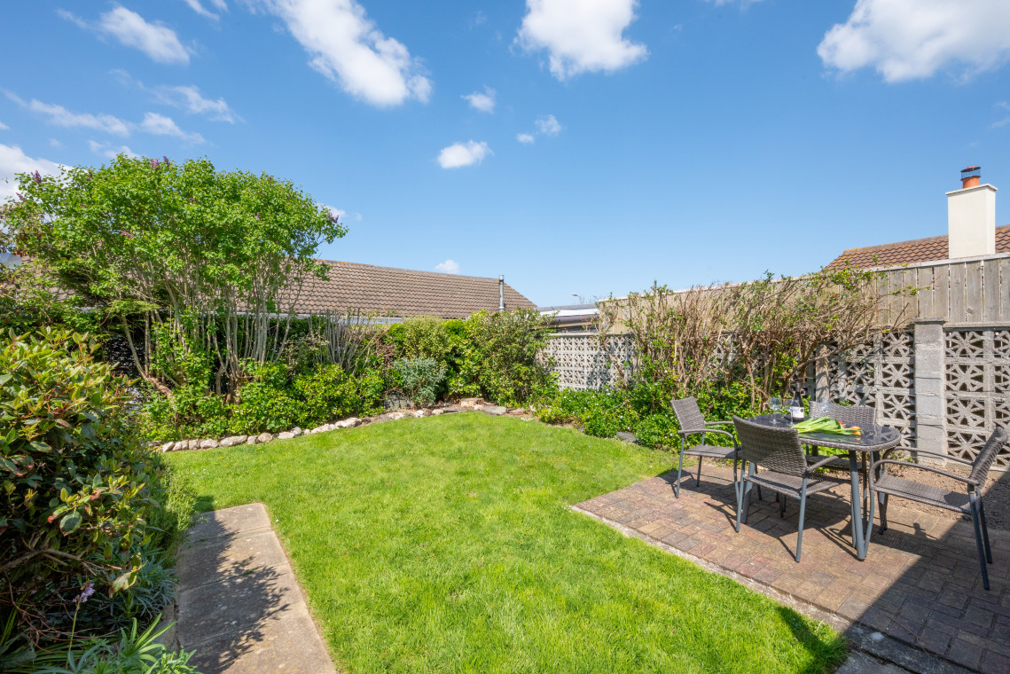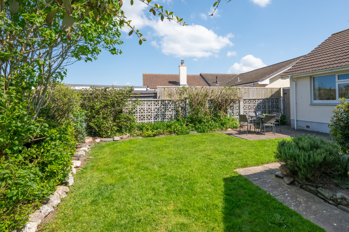 - Outdoors: NB garage not available for use. Front garden small lawn with a shrub border, enclosed rear garden mainly laid to lawn with patio area, garden furniture. Shed can be used for storage of bikes, surfboards, wetsuits etc.