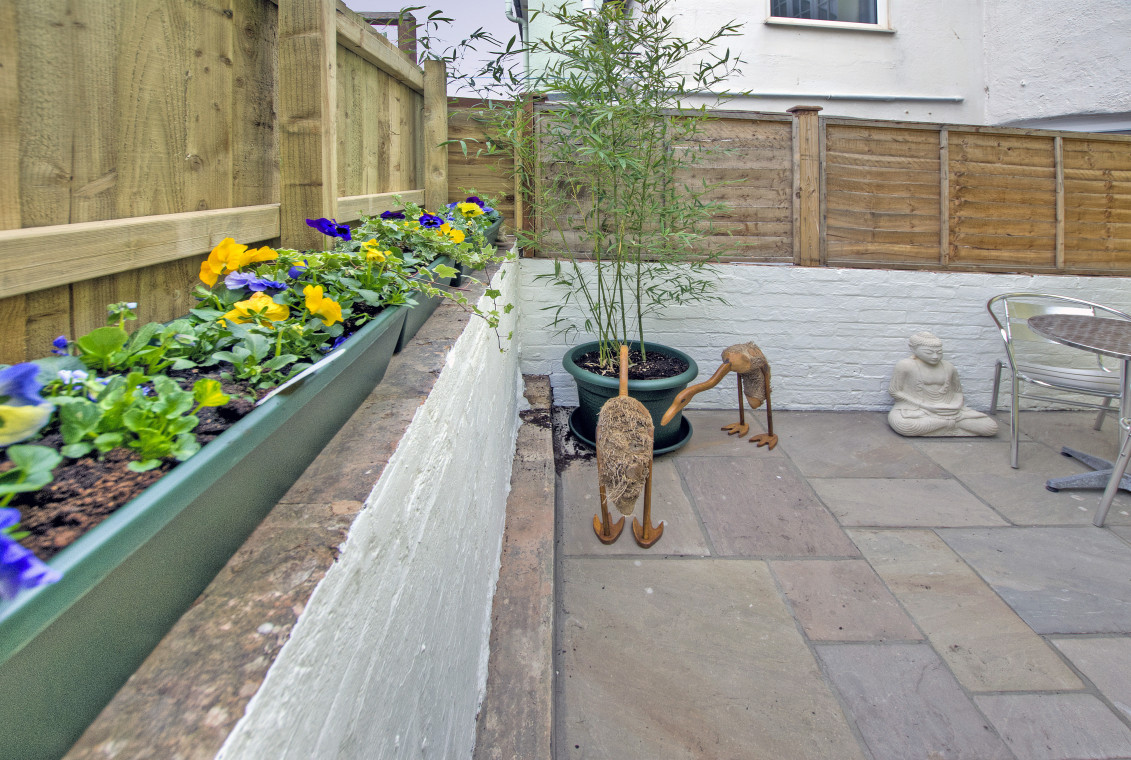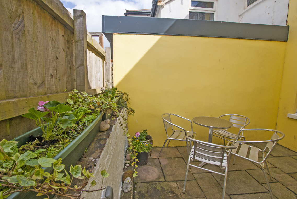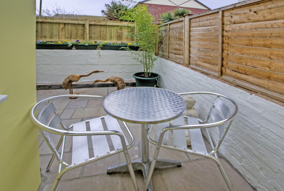 Small rear enclosed pretty courtyard. Garden table and chairs.
