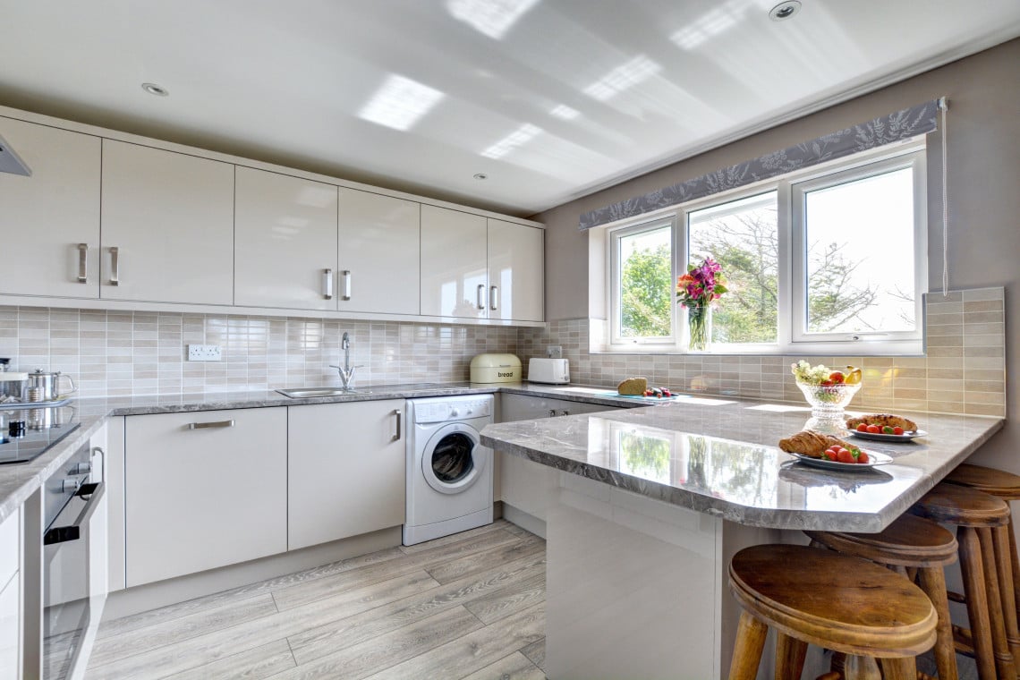 - Kitchen and utilities: Electric oven, ceramic hob, microwave, fridge/freezer, dishwasher, washing machine.