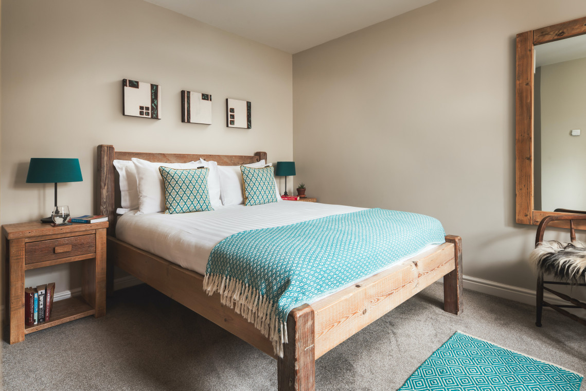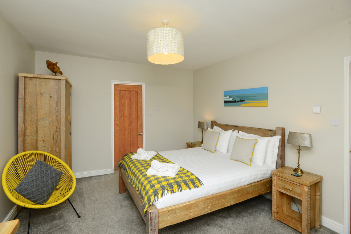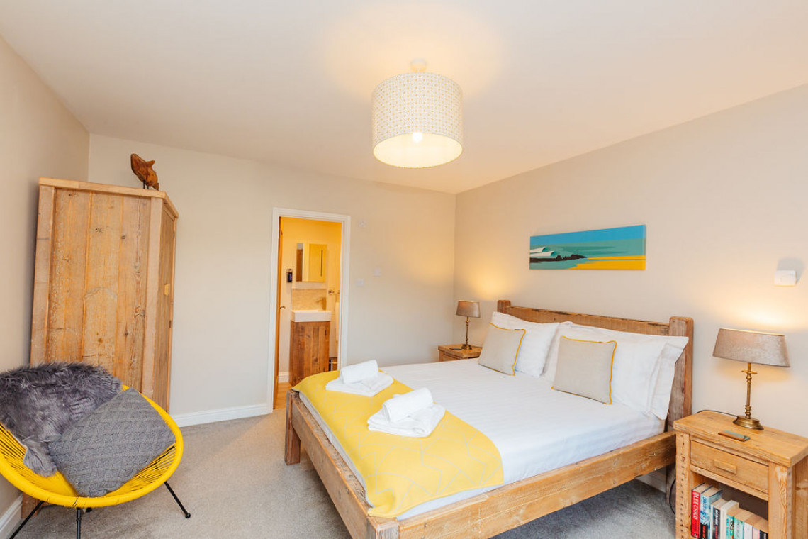 At Gwelmor we strive to use local suppliers and providers where possible. Our super comfy mattresses are natural and organic by Devon firm NaturalMat and our sustainable wooden furniture was made bespoken by Chunky Monkey, also in Devon. The artwork on our walls is by regional artists or by the owner herself.