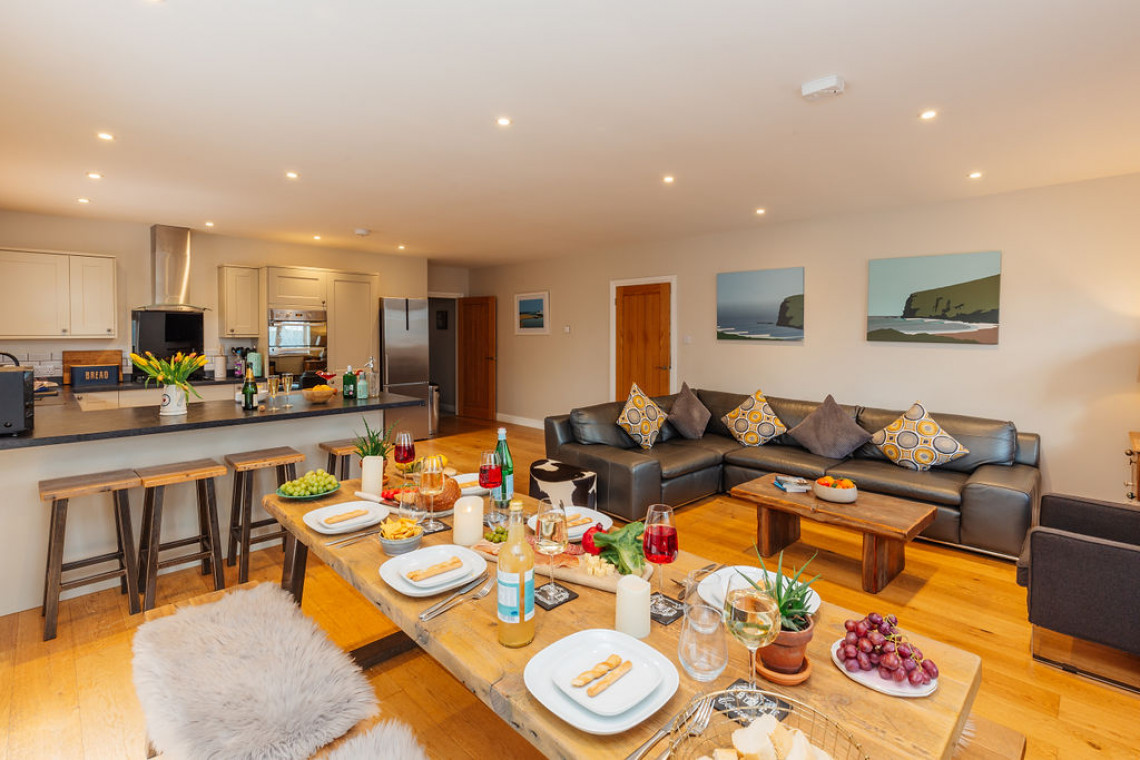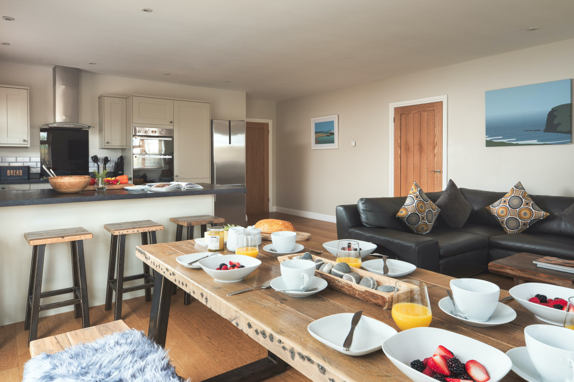 For the humans, Gwelmor has two king size bedrooms (one en-suite), a twin room and a large family bathroom. The spacious, open plan kitchen/lounge/diner is a great place for the family socialise together and has sliding patio doors which lead out to the garden.