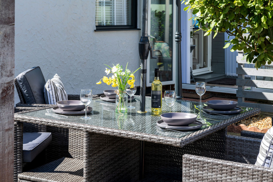We're super dog-friendly! The cottage has a large south-facing fenced garden with comfy dining furniture, perfect for you and your doggies to relax and have fun. There's a hose in the garden and at the front of the garage to wash off muddy or sandy paws and boots after exploring the area, and there's a large metal pet enclosure/pen provided.