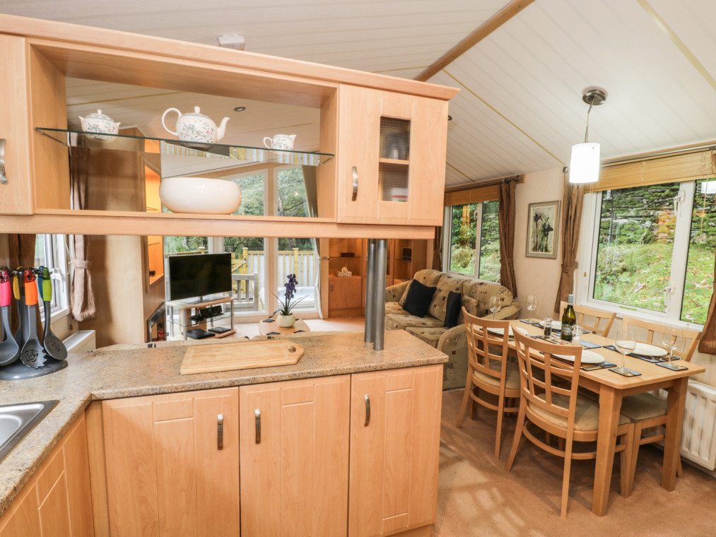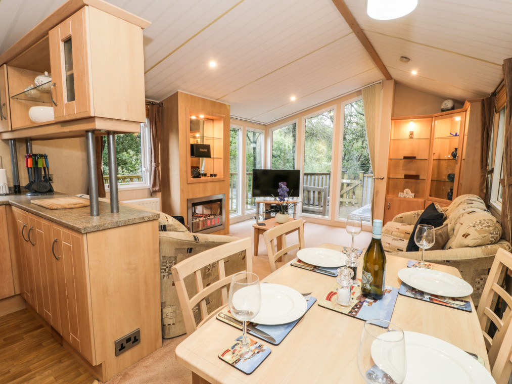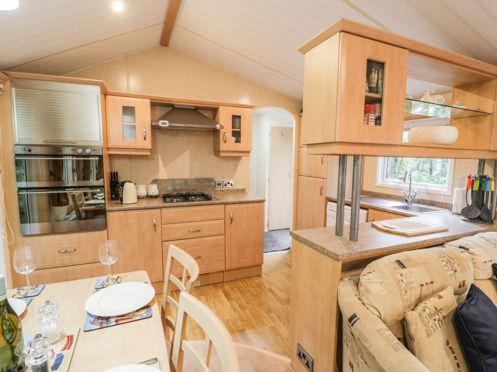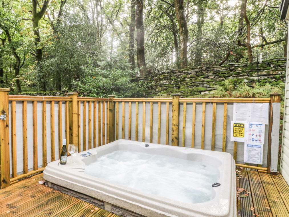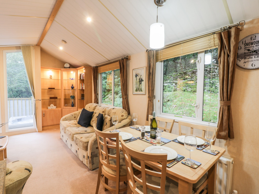 A high quality lodge on Aberdunant Woodlands Park in North Wales with hot tub. The well-equipped holiday park in such a beautiful location makes this the perfect holiday destination for families with young children to come and get away from the hustle and bustle. This lovely lodge comes with a charming, homely open plan living area boasting comfortable sofas sat in front of the Freeview TV and electric fire, with the full length windows to the front offering wonderful views of the surrounding woodland. The kitchen is amply-equipped including a full size fridge/freezer, coffee maker and a picnic rucksack for you to use. The two bedrooms are fresh and cosy with delightful linen and plenty of storage. This lodge is complete with a classy family shower room. Just to make it that little bit more special, this property comes with an extensive decking boasting plenty of chairs and even a sunken hot tub big enough for all four of you to sit and enjoy. Aberdunant Woodlands Park is a beautiful place in a beautiful location, on the fringe of the Snowdonia National Park it is rife with natural beauty and wildlife to spot. The holiday park also offers a club/restaurant and a children's play area to keep the little ones busy. Prenteg is a small village offering incredible scenery. This area is packed with beautiful locations, namely Porthmadog and Criccieth, both popular tourist destinations and are great places to visit. H66B is a well-presented lodge in a beautiful location. All ground floor. Two bedrooms: 1 x king-size with en-suite basin and WC, 1 x 2ft 6in twin. Shower room with basin and WC. Open plan living area with a kitchen, dining area and a sitting area with an electric fire. Amenities for Rental Gas central heating with electric fire Gas oven and hob, microwave, fridge/freezer, washing machine, TV with Freeview, DVD, iPod dock, selection of books, games and DVDs Fuel and power inc. in rent Bed linen and towels inc. in rent Ample off road parking Decking with furniture and a hot tub Two well-behaved dogs welcome Sorry, no smoking Shop 3 miles, pub on-site Note: Pets not allowed in bedrooms Note: WiFi is available at additional cost via arrangement with the holiday park Note: The twin room has 2ft 6in singles, only suitable for children Note: The lodge is accessed via 6 steps so may not be suitable for infirm.