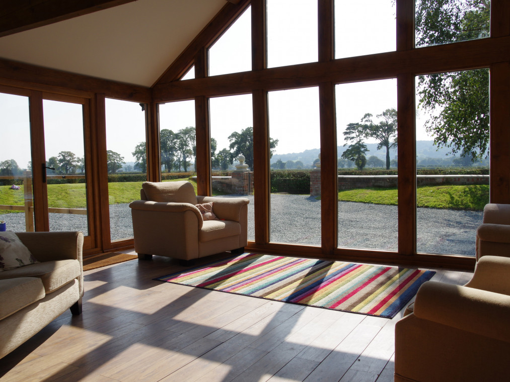 Surrounded by luscious rolling countryside on the edge of the village of Llandrinio, you will find Haimwood Byetake. A well-appointed ground-floor dwelling, this attractive abode has been renovated to a high standard, offering a fantastic setting for an action-packed escape to Wales for one or two couples. Step inside the sociable open-plan living space with light flooding in from the magnificent wall-to-wall windows, as you kick back and relax on stylish sofas and scan the Smart TV for an entertaining movie. Admire the pretty green cabinets and striking electric range cooker that rests peacefully within the kitchen, perfect for showing off those culinary skills with the help of the handy utensils that fill the drawers. Gather at the beautiful oak dining table and delight in a hearty home-cooked meal as you discuss your most looked forward to activity during your stay. No need to argue over who'll be washing the dishes as this cottage is complete with a convenient dishwasher, as well as a separate utility room boasting both a washing machine and a tumble dryer. Take in the magnificent views as you sit out on the decking with a perfectly chilled glass of bubbly and watch as the sun sets on another memorable day in Wales. Retreat indoors and discover two spacious king-size bedrooms, each benefitting from the use of their own en-suite shower room and views of the hills. River Vyrnwy follows part of the English and Welsh border and runs through 6 acres of the owners’ land, where this property lies. With its fantastic setting, it's little wonder that guests will be spoilt for choice with a number of exciting cycle routes and nature trails to explore during their stay. Head to the Shropshire Hills Area of Outstanding Natural Beauty and get your adrenaline going with a thrilling day spent mountain biking or instead, opt for a more leisurely hike through the Carding Mill Valley and the Long Mynd. Climb to the nearby historical landmark of Admiral Rodney’s Pillar and admire sweeping views of the land, before paying a visit to the town of Welshpool to discover the magnificent landscapes of the National Trust owned Powis Castle and Gardens. 40 minutes West is Lake Vyrnwy, this slice of heaven ideal for walkers and cyclists this hidden gem is surrounded by stunning views and beautiful wildlife this place is a must all year round. Cross the English border to Shrewsbury and spend the day bobbing along the River Severn with a tour on Sabrina Boat. Take a tour of the old local prison, or spot colourful flowers at the Shrewsbury Flower Show before visiting Attingham Park Estate with the iconic Town Walls Tower. Make the most of time with friends and family on a stay at Haimwood Byetake in Wales. All ground-floor. Two bedrooms: 2 x king-size bedroms, each with en-suite shower, basin and WC. Open-plan living space with kitchen, dining area and sitting area. Utility room Amenities for Rental Ground-source heat pump central heating Range cooker with electric oven and hob, microwave, fridge/freezer, washing machine, dishwasher, tumble dryer Smart TV and WiFi Fuel and power inc. in rent Bed linen and towels inc. in rent Highchair and travel cot available on request Off-road parking available Under-cover area for sports equipment storage (bikes, fishing rod, etc.) - possible additional storage available by prior arrangement Front garden with decking featuring an outdoor seating area and gas BBQ Two well-behaved pets welcome Sorry, no smoking Pub 2.4 miles; Shop 2.7 miles