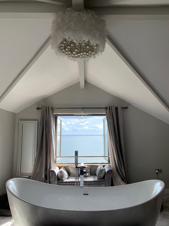 Breathtaking 2 Bedroom Luxury Cornish Cottage with Panoramic Sea and Harbour Views with Hot Tub - Featured on Channel 4's George Clarke's Amazing Spaces Series 6 Episode 8 Harbour Lights - be the star of your very own atmospheric love story in this unique luxury sea sanctuary, set along the sweeping south coast of Cornwall. The beautiful village port of Charlestown has played host to many famous figures in its time, from Poldark to Alice in Wonderland...and most recently George Clarke, who featured Harbour Lights, formerly known as the ‘Loo with a View', on his hugely popular ‘Amazing Spaces' TV programme. It's not hard to see why George was so captivated by the intricate work lovingly carried out on this imaginative and elegantly restored property. Built in 1771 as a fish and net cellar, the building was later renovated into public conveniences before being rescued from its ramshackle state in 2015. The building has now been fully renovated into a truly luxurious pet-friendly two-bedroomed holiday hideaway, full of natural character and marine-inspired style, featuring truly unsurpassed sea views from the cliff top. Great care and attention has been taken with the design and furnishing of every room to ensure perfect harmony with the beautiful coastal surroundings. Ancient reclaimed timber décor and solid oak doors add chic touches of time-honoured style, alongside the more contemporary pure white Italian marble worktops and soft grey backgrounds that perfectly complement the magnificent bay and harbour views from the windows. The ground floor encompasses a spacious open-plan living area, described by George Clarke as fabulously "light and airy", featuring a fully furnished designer kitchen that looks out across the harbour. Fire up the stylish log burner and watch the ships as they glide languidly by! Take the stairs and discover two exquisite bedrooms, one large double featuring glorious views over the harbour and Charlestown Bay - with a luxurious Heritage bath right at the bottom of the bed. The second, slightly smaller, bedroom features a beautiful view of the garden area. You'll also find a stunning Italian marble and stainless steel furnished en-suite, and a utility area and walk-in wardrobe featuring fitted storage and a washer-dryer. Underfloor heating and a Sonos sound system with three independent zones runs throughout, so that wherever you happen to be, you'll be effortlessly able to set the perfect mood! The views become even better outside, when experienced with a glass of bubbles from the lavish four-seater hot tub looking out across the sea! There's a slate patio with shower area that's particularly lovely after a sandy day on the beach, and a beautiful garden with decked terraces and colourfully lush flowers and plants that have been carefully selected to make the most of their surroundings. Discover Harbour Lights' namesake at the end of the garden...a quaint little lookout shed which in times past was home to the searchlight that guided the Tall Ships safely into harbour. Here you'll find two benches carved from the old roof timbers, creating the perfect romantic hideaway. Oh - and just in case you're wondering whether any remnants of the building's former history remain, hanging proudly above the downstairs bathroom are the original ‘ladies' and ‘gentlemen' signs...the Cornish born-and-bred owners just couldn't bring themselves to flush those away! You'll find it extremely difficult to tear yourself away from this sea sanctuary, but if you decide to venture out and about, why not take your dog to Charlestown beach for a run, perhaps with some seal and dolphin-spotting along the way? Watch the fishermen bring in their daily catch before taking yourselves off to indulge in a gourmet seafood meal at the award-winning Falmouth Bay Seafood Café, another of the owners' stylish dog-friendly retreats. There's also a large and friendly selection of local restaurants, bars and ice-cream parlours just five minutes' walk away, including the locally renowned Pier House Hotel. The ancient Grade 2 listed port is steeped in historical architecture...along with a glittering touch of celebrity from its regular use as a film set. So set sail to Harbour Lights and take a punt on a invigorating and relaxing break with genuinely breathtaking sea views you won't forget in a hurry!