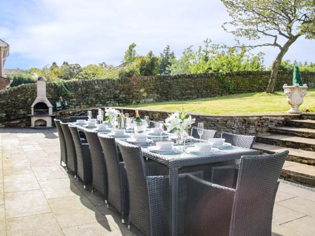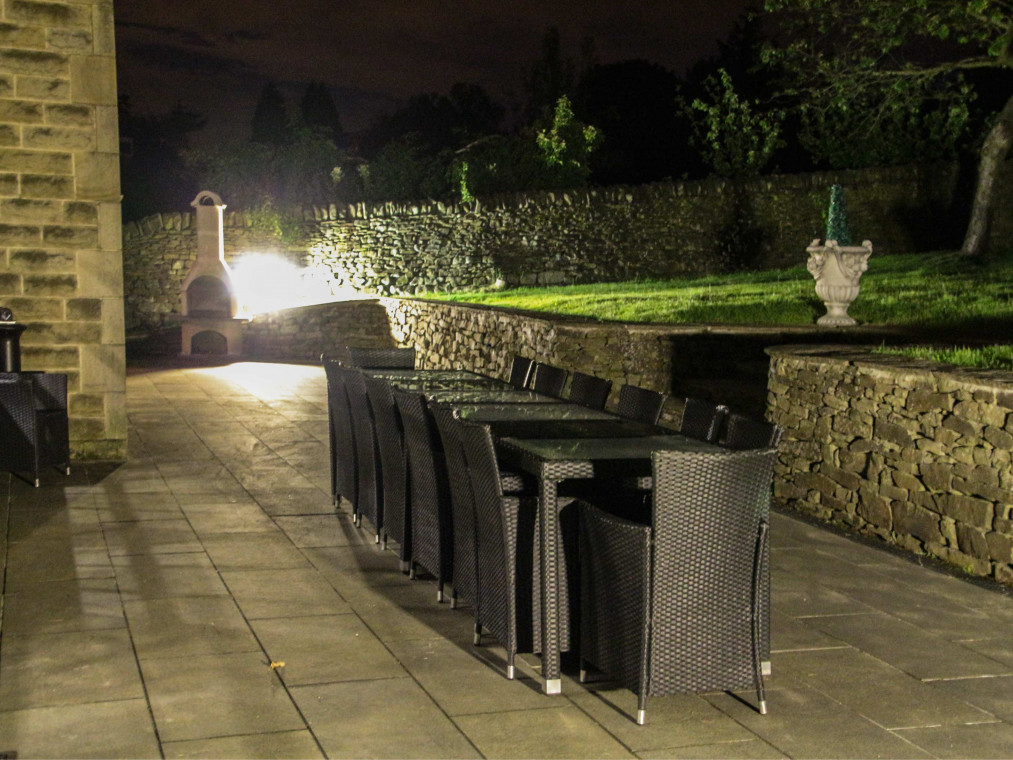 This fabulous, stone-built, detached country house is surrounded by moorland, on the outskirts of the Yorkshire village of Millhouse Green, on the edge of the Peak District National Park. Beautifully appointed throughout to provide spacious accommodation of over 4000 square feet, this country house is perfect for large families or groups of friends to explore this rugged part of the Peak District, or simply as a place to enjoy a luxury break away. Having won a silver Sykes Gem award in 2017 for 'Best for Large Groups', this cottage boasts sumptuous living spaces with granite floors and quality furnishings. The elegant sitting room displays a chess table and a fabulous, hand carved marble fireplace housing a coal-effect gas fire. There is also a formal dining room and a superb, well-equipped kitchen with granite worktops, breakfast bar and dining table. There are seven wonderful bedrooms ensuring that everyone has the space for some peace and quiet, plus children and adults will love the large games room with leather sofa and bean bags on the second floor and the football pitch in the garden. Completing the accommodation are four luxurious bathrooms, three of which are en-suites. Outside, is a large rear patio, where you can sit and relax as the children play in safety in the enclosed garden. The village of Millhouse Green offers a traditional way of life, with a small shop, a good pub and even crown green bowling! Spend some time exploring the beautiful Peak District National Park, visit the popular village of Holmfirth or take a short drive to the cities of Sheffield, Leeds and York, the town of Huddersfield and the Yorkshire Dales National Park. A fantastic, luxury holiday house, surrounded by a stunning local landscape and breathtaking views, that due to its fabulous amenities and location can be enjoyed all year round. Over three floors. Seven bedrooms (six with FreeSat TV/DVD and ground floor twin has Smart TV only): 1 x super king-size double with en-suite double Jacuzzi bath, separate double rain shower, double basins, WC, walk-in wardrobe and cot, 1 x family room with 1 king-size double and 1 single with en-suite rain shower, basin and WC, 1 x four poster king-size double, 1 x king-size double, 1 x double with reclining and massage function, 1 x 2nd floor double with balcony and en-suite freestanding bath, basin and WC (can also be used as a shared bathroom through games room access), 1 x ground floor twin. Bathroom with corner bath, separate rain shower, double basins and WC. Ground floor basin and WC. Kitchen with breakfast bar, dining area and TV. Utility. Dining room. Reception room. Sitting room with HD TV and gas fire. Second floor large games room with sitting area, TV and balconies. Amenities for Rental Gas underfloor heating with gas fire and solar panels for electricity Four electric ovens and gas hob, microwave, fridge, fridge/freezer with ice maker/filtered water, washing machine, tumble dryer, dishwasher, 10 x TVs (9 with FreeSat, including 70" Ultra HD TV with Sky+ family package, Sky Sports and Sky Cinema), on demand and catch up TV and PlayStation 3 in sitting room and Smart TV in ground floor twin, Sky Fibre super fast Broadband (WiFi), selection of books, board games, PlayStation 3 games and DVDs, gun safe Fuel and power inc. in rent Egyptian cotton bed linen and towels inc. in rent. 1 x full sized Cot, 1 x travel cot, 3 x highchairs and 1 x stairgate Games room with full size pool table, table football and table tennis.There is also a children's/toddlers soft play area (to be erected by guests) in the property Off road parking for 10 cars Enclosed rear patio with furniture for 15 people, coal BBQ and large enclosed garden with football pitch Four well-behaved pets welcome on ground floor and off furniture only - 1 x dog bed and 1 x bowl provided Sorry, no smoking Shop 5 mins walk, pub 2 mins walk Community tennis court 150 meters away and free to use for guests during opening hours Note: No stag, hen or similar parties Note: Check-in 4pm Note: Hot tub hire - £255.00 per week and £195.00 per weekend, catering and personal chef, Wine tasting, Cocktail Classes (Mixology) and Whisky tasting - as well as an array of other private activities such as Archery, Laser Clay Pidgeon shooting etc. and evening entertainment (Fun Casino, Murder Mystery) can be provided at additional cost and upon prior arrangement with the owners, please pay the owner direct for these facilities Note: This property has won a silver Sykes Gem award in 2017, for 'Best for Large Groups'