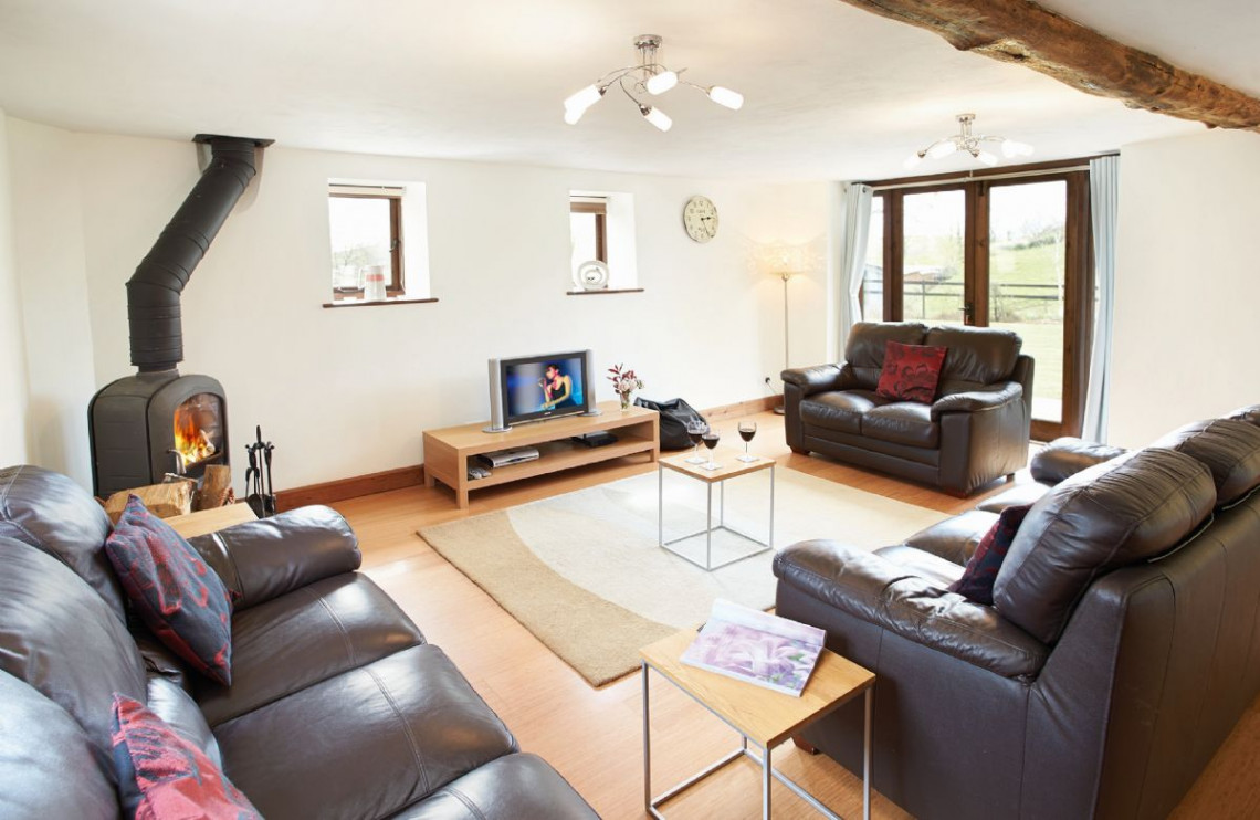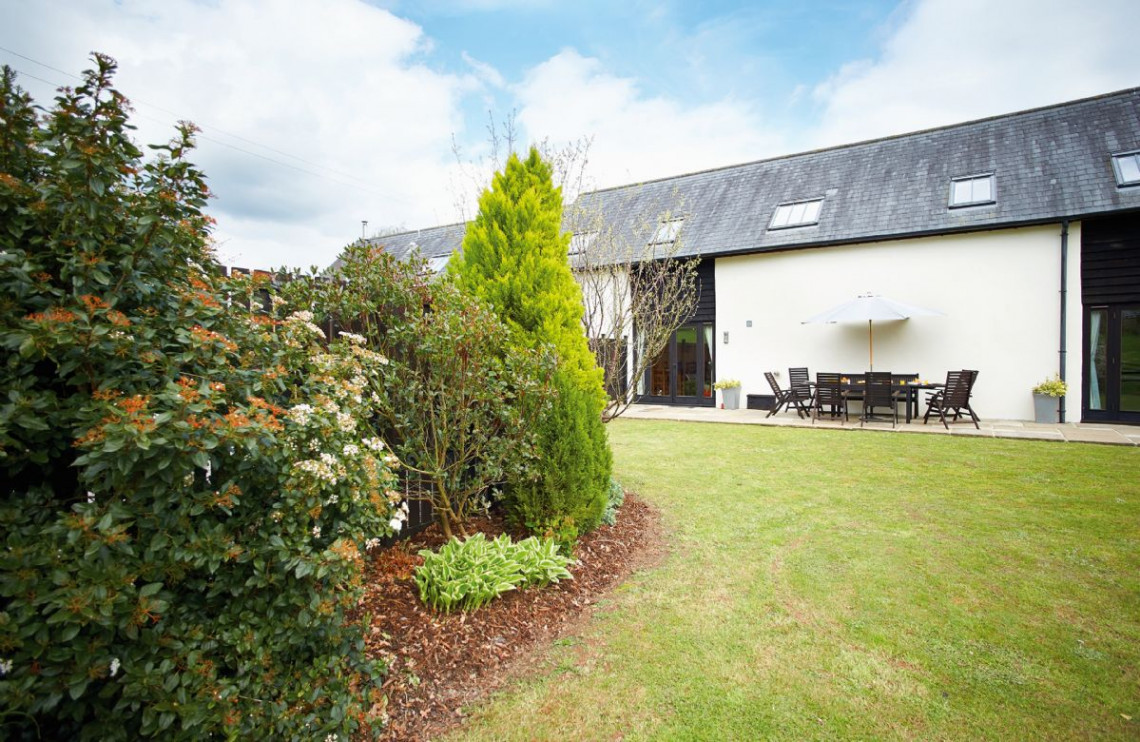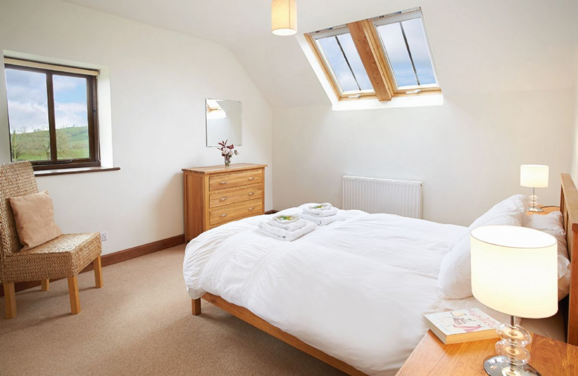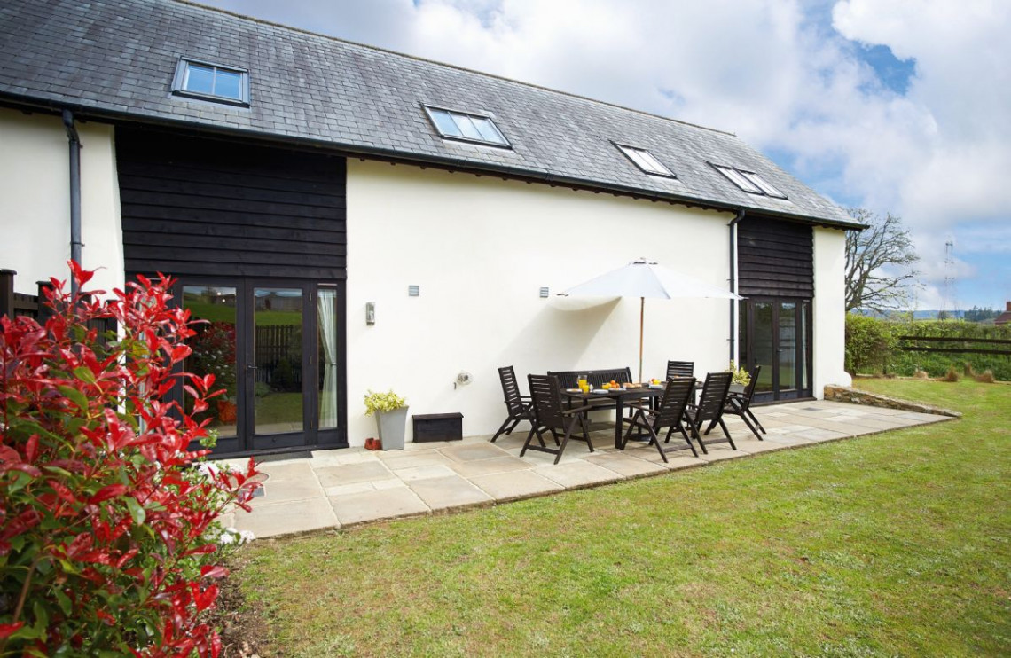 This fine property has a large kitchen/dining/family room with french doors to terrace and garden. Features include oil-fired underfloor heating on ground floor, wood burning stove in the sitting room and an electric range cooker. It has a fully enclosed garden. Harvest Moon is a semi-detached holiday property adjacent to Hunters Moon near Feniton, Devon. These holiday properties have been beautifully converted from a 400-year-old threshing barn, situated on a quiet, semi-working farm in the tiny hamlet of Curscombe. Surrounded by picturesque fields, Harvest Moon is in an ideal location for an outdoor break in Devon, where you can walk your dog, paddle in the stream or have a picnic. There are wonderful views, abundant birdlife, and wildlife including foxes, deer, badgers and hares are often spotted.