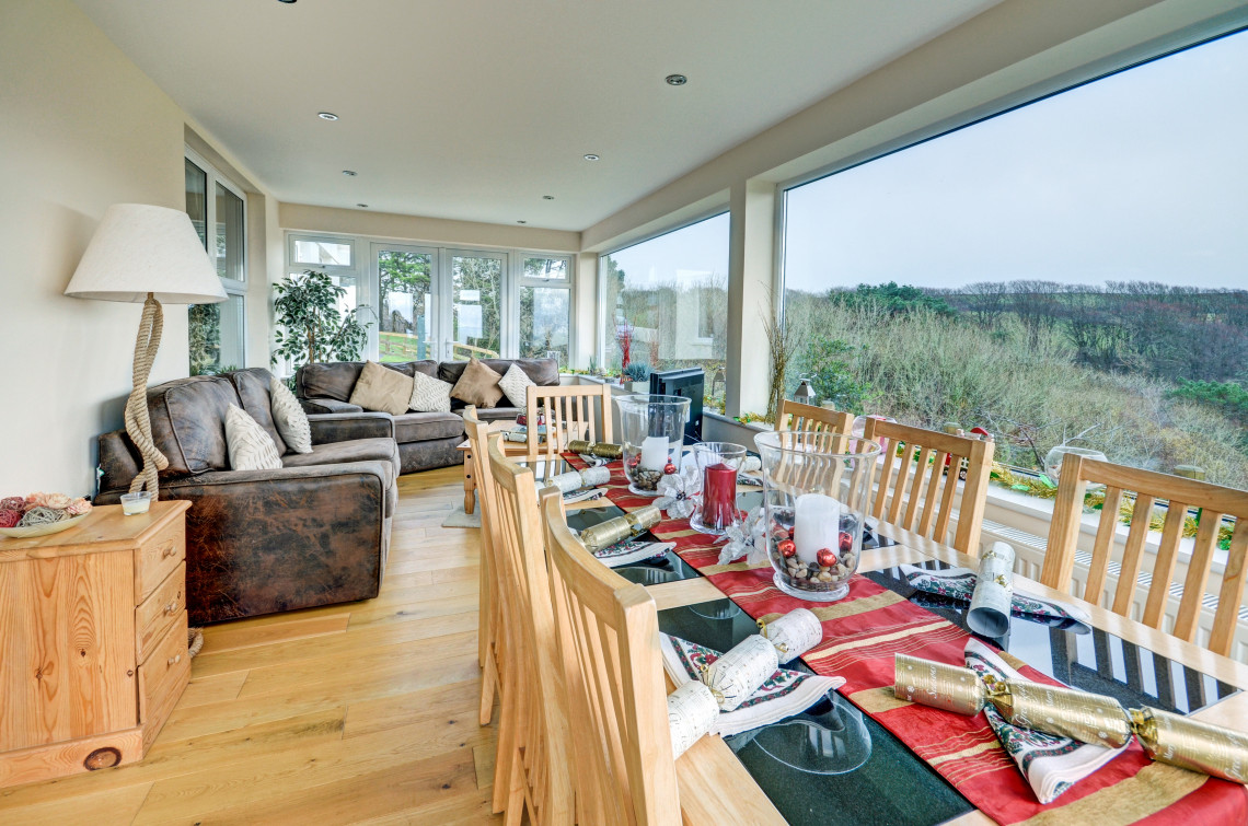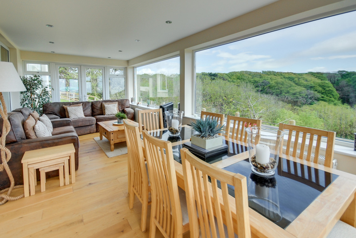 - Rooms: 4 bedrooms one with en-suite bathroom and large balcony, living room, dining room in large conservatory, shower room and family bathroom, kitchen, utility room
