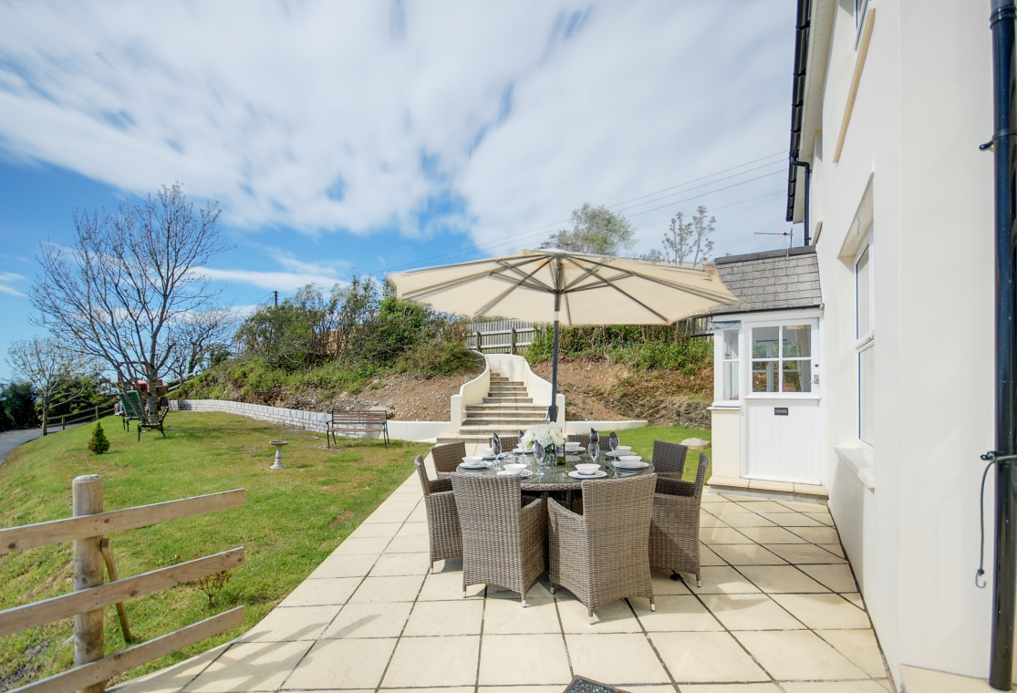 - Outdoors: Lawned garden, garden furniture. Brick babecue.