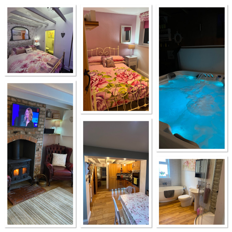 Read MoreBeautiful 200 year old cottage in Roos , East Yorkshire , custom built summerhouse with hot tub , bar stools and optics , fully enclosed south facing small garden but fully secure , with outdoor furniture,2 bedrooms, king-size bed with en-suite and second bedroom has a small double bed. Ideal for 3 adults or 2 adults and two children ,log burner, oak floors. Just over 3 miles to dog friendly beaches. Agility park for dogs across the road. 2 minute walk to 2 dog friendly pubs. Full size fridge freezer. Bathroom has free standing bath and shower. We have a tv in the lounge and in both bedrooms . We have a secure website https://suesretreats.co.uk/hemlock-glade-cottage/