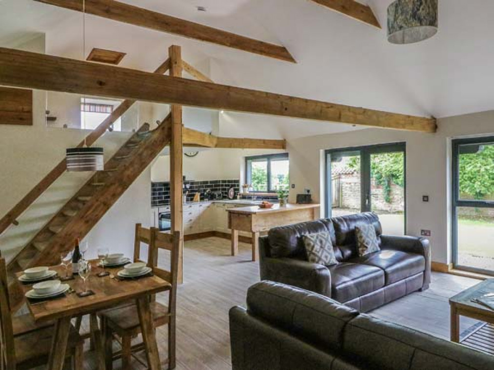 Horncastle 7 miles. Situated on the Western edge of the Lincolnshire Wolds, this outstanding two bedroom barn conversion has the facility to house five people, with its additional mezzanine level accommodation, resting next to the property owner's home. Finished to the highest of standards, and set in its own beautiful and spacious walled gardens, this newly completed conversion is a superb quality accommodation in the most tranquil of settings. With a glorious outlook onto the garden, the large open plan living area with kitchen boasts underfloor heating, with a quality tiled finish and oak worktops in the kitchen and beamed high ceilings, along with an attached utility room. Steps take you up to a mezzanine level that allows the property to cater for up to five people as it includes a double sofa-bed in a snug area overlooking the open plan living space below. The downstairs hallway takes you to the bedroom accommodation, the first of which is a king-sized room with its own highly finished en-suite, including bath, WC, basin and hand held shower. The end of the hallway finds the generously sized twin room, once again boasting a lovely aspect into the garden. Between the two bedrooms is a family-sized shower room and WC finished to a high standard. Situated in the hamlet area of Ranby, you are within walking distance of the village. The town of Market Rasen is a short drive away, with all the amenities you could need and if you fancy a flutter, the famous race course. This property can be booked with ref. 25054 and together they will sleep 17. Mainly ground floor. 1 x king-size double with en-suite bath, hand held shower, WC and basin, 1 x twin. Shower room with walk-in shower, WC and basin. Open plan living area with kitchen with breakfast area, dining area and sitting area. Utility. First floor mezzanine level with double sofa-bed. Amenities for Rental Underfloor heating Electric oven, ceramic hob, microwave, fridge/freezer, washer/dryer, dishwasher, TV with Freeview, WiFi, selection of books, games and DVDs Fuel and power inc. in rent Bed linen and towels inc. in rent Ample off road parking Enclosed lawned garden with lawn and patio with furniture Two well-behaved pets welcome Sorry, no smoking Shops and pubs 7 miles and pub 2 miles Note: Check in time for this property is 5pm, check out is at 11am This property can be booked with ref. 25054 and together they sleep 17 Basketball hoop on the tennis court Tennis court for the shared use of Hemmel Barn, Ranby Hill Barn, and Ranby Hill Cottage, incorporating a basketball hoop for non tennis players.' Note: Property is situated next to the owner's home