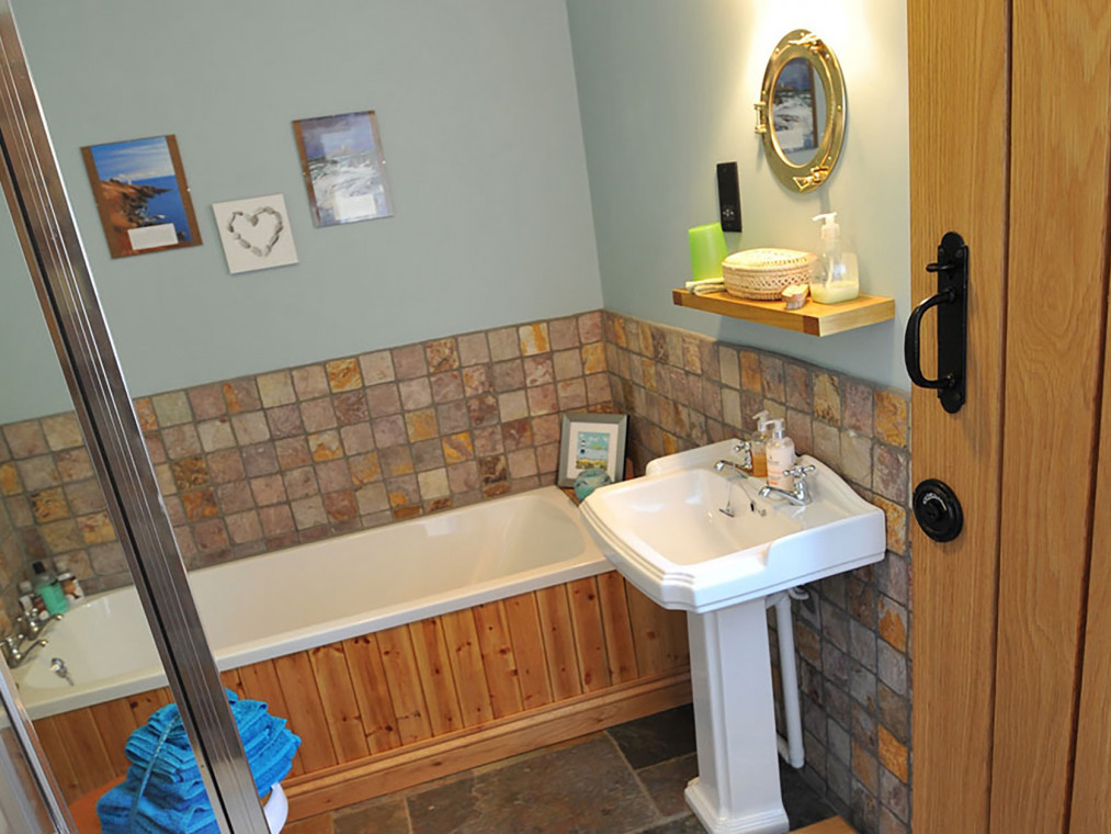 Hen Dy Goits is a gorgeous family holiday cottage on Anglesey that was once a coach house. Nestled in the south westerly corner of Anglesey, it is ideal for visiting the beautiful beaches at Newborough, Llanddwyn or Aberffraw. A little further north is the popular seaside town of Rhosneigr which has a variety of good shops, cafes and restaurants and is perfect for a wide selection of watersports. The open plan living area is spacious, bright and comfortable. It has full-length glazed oak doors which open out onto the pretty garden. A traditional multi-fuel stove adds extra cosiness on colder evenings. One of the sofas converts into a high quality double bed, ideal for overnight guests. The bespoke kitchen has been hand-crafted from reclaimed doors - what a wonderfully quirky touch! There is an oven, hob, toaster and kettle as well as a Belfast sink. The kitchen table is extendable to allow for more room if needed. A door leads to the garden area. The lobby is where you’ll find the freezer, washing machine and a clothes airer. There is space for storing shoes. The master bedroom has a now out of use fireplace with a gorgeous cast-iron surround and a slate hearth. The second bedroom has three single beds. The lovely family bathroom has a bath, loo, wash hand basin, heated towel rail and a large shower. The door in the kitchen leads out into a walled patio garden made up of Welsh slate. Out here you’ll benefit from the morning and early afternoon sun which means its ideal for al fresco brunches! Later in the day, the sun can be found round on the decking area and field at the back of the house - this is the best place to sit with a glass of wine and soak up the setting! Hen Dy Goits is a truly unique holiday cottage and if you’re interested in eco-friendly holiday accommodation, this could be the one for you! The roof is supported by old pitch pine beams, all of the rooms downstairs are floored with random slate slabs and have under-floor heating which comes from an air-source heat pump. The windows are made of Welsh oak and that’s a theme throughout the holiday cottage. Not just is the holiday cottage amazing, but the setting is too! You may see barn owls during your visit as they nest nearby. Generally, the western coast of Anglesey has plenty of wildlife including red squirrels, a myriad of birds and even porpoises and seals out to sea! You can make the most of fabulous walks and many other activities close by, as well as attractions, sandy beaches and interesting seaside towns and villages. A happy family holiday in North Wales is bound to be yours from Hen Dy Goits. Two bedrooms: 1 x king, 1 x double, 1 x room with 3 singles. 1 x bathroom with bath, loo, wash hand basin, heated towel rail and a large, luxurious shower. Sitting room with cast iron multi-fuel stove and a sofa that turns into a sofa bed for overnight guests. Kitchen with dining area. Utility room with freezer, washing machine and a clothes airer. Amenities for Rental Multi-fuel stove Freezer, electric over and hob, toaster, washing machine DVD player, TV with Freeview Wifi. 2 dogs welcome Off road parking Stairgate Welsh slate patio and walled garden with seating Decking area and field at the back of the house.