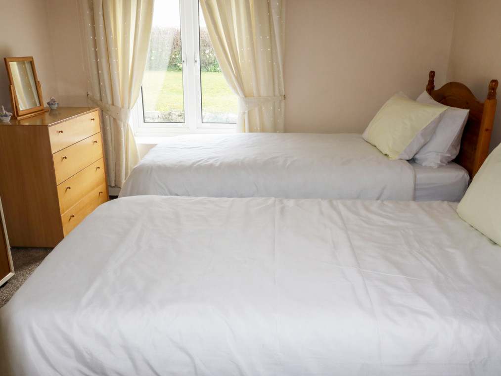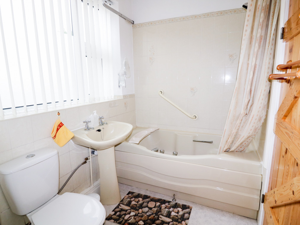 Bodelwyddan 1.5 miles. This detached bungalow is located in the hamlet Cross Foxes south of Bodelwyddan Castle's outer wall. This is a perfect holiday base for a family or group of friends wishing to explore the outstanding natural beauty of North Wales. The property comfortably sleeps six in spacious bedrooms with ample storage space for belongings. The front double bedroom has exposed timbers and a quaint en-suite wet room. Along the hallway are the further two well-lit twin bedrooms, both with beautiful garden views through large windows. There is a large bathroom with a shower over bath facility and a separate small WC just down the hallway. The property boasts an open plan kitchen and dining area with an additional breakfast bar and feature fireplace. The kitchen is fully equipped with the necessary amenities including an electric cooker, fridge/freezer and microwave, ideal for guests to rustle up a delicious meal. To the rear of the bungalow is a lovely conservatory sun room which opens onto a large patio, an extension upon the already spacious living room. The living room has ample leather sofas, a TV and a wide selection of books and Ordinance Survey maps to help guests plan their adventures around the Welsh countryside. Guests should note that due to the age of the property some doors have low head height. Accessible via a few steps to the superb, raised garden provides an ideal space for children to let off some holiday excitement and for guests to exercise their dogs. The Kinmel Arms is just a short drive away and serves gastro pub style food. Guests can explore the stunning coastline of North Wales, which is just a short ten-minute drive away. This is an exceptional bungalow, ideal for groups of six wishing to enjoy the coast of North Wales. All ground floor. Three bedrooms: 1 x double with en-suite wet room, 2 x twins. Bathroom with bath, shower over, basin and WC. Separate WC. Kitchen with dining area and breakfast bar. Utility. Sitting room with piano leading to conservatory. Amenities for Rental Electric storage heaters Electric oven and hob, microwave, fridge/freezer, coffee percolator, water heater, washer/dryer, TV with Freeview, WiFi Fuel and power inc. in rent Bed linen and towels inc. in rent Ample off road parking Lawned garden with patio and furniture Two well-behaved pets welcome Sorry, no smoking Shop and pub 1.5 miles Note: Low head height to bedrooms and kitchen doors Note: There are some single steps within the property and 2-3 steps within the grounds Note: Property is adjacent to a B road Note: Care must be taken where the garden meets the house due to a change in gradient.