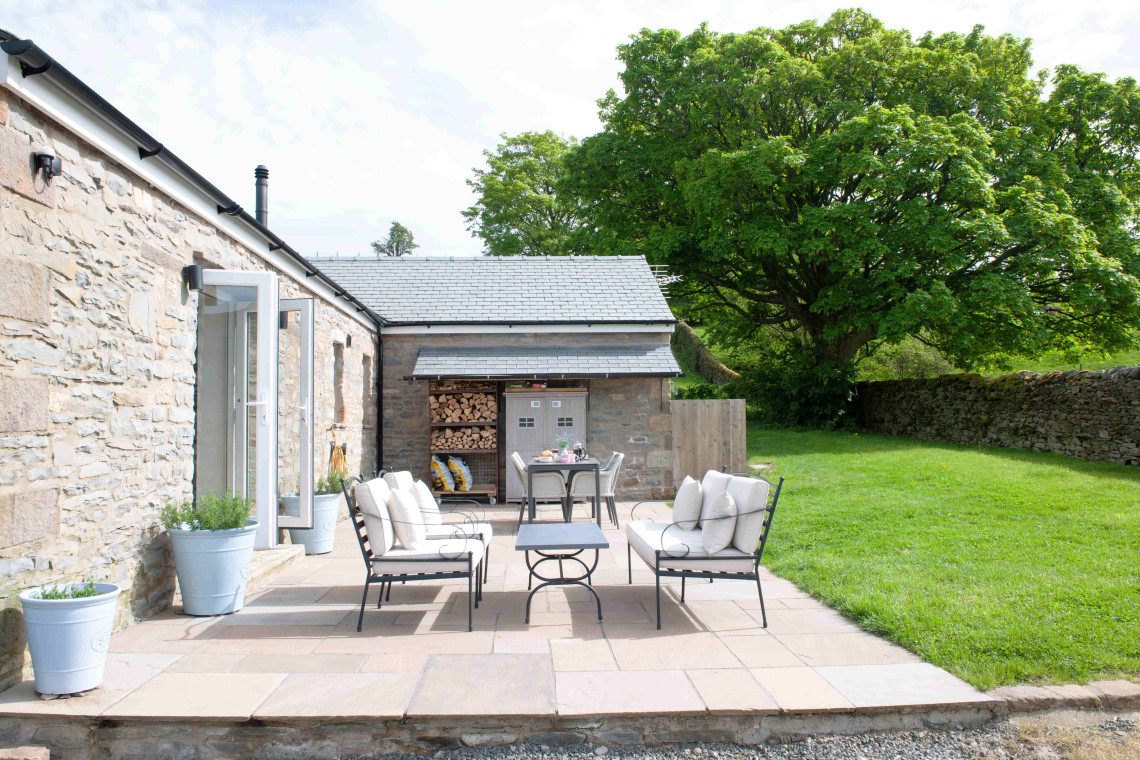 Luxe 2 shower ensuite doubles (1 can be twin), 1 acre fenced paddock/gardens for dogs from the door, stunning scenery, log burner, luxe kitchen, private parking, EV charger, rural, 1m walk to Sedbergh's pubs and restaurants, quiet, dark sky area, dog walks from door, glorious patio, dog drinking trough, single level, smart TVs all rooms.