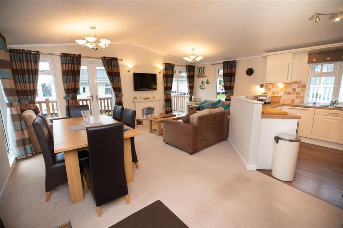 Modern detached holiday lodge furnished and equipped to a high standard.