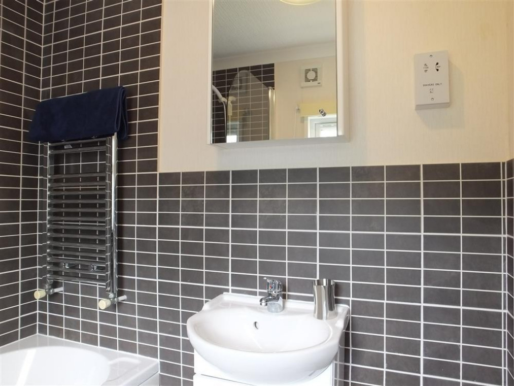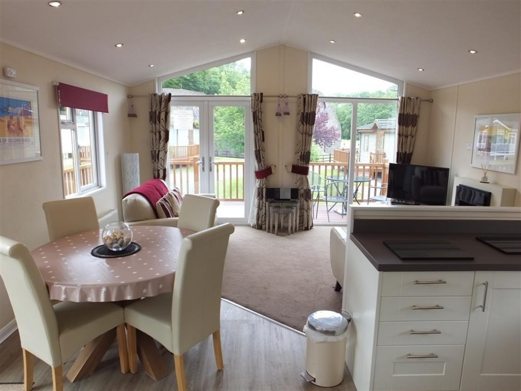 Lounge/Kitchen/Diner, TV/Freesat, CD player, electric fire, gas hob, electric oven, fridge, microwave, dishwasher, washer/dryer. Shower room. Bedroom 1, double, TV; en-suite bath/shower Bedroom 2, twin (child beds). Large decked area with country views over the park. Towels provided. Parking. Wi-Fi connected.