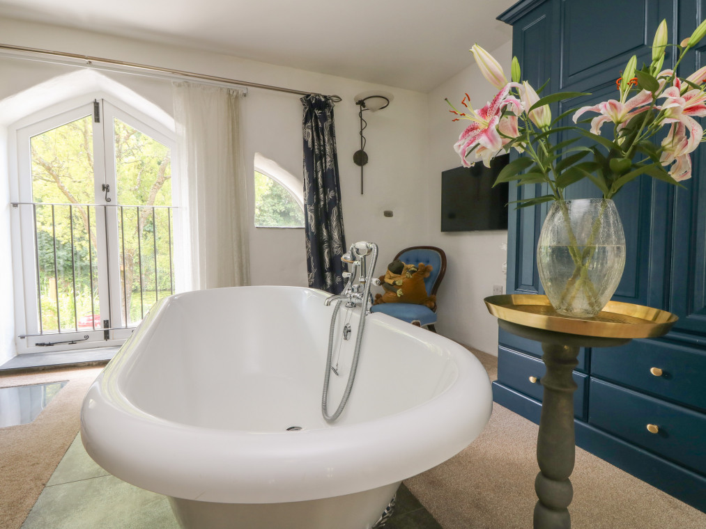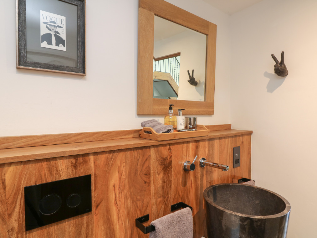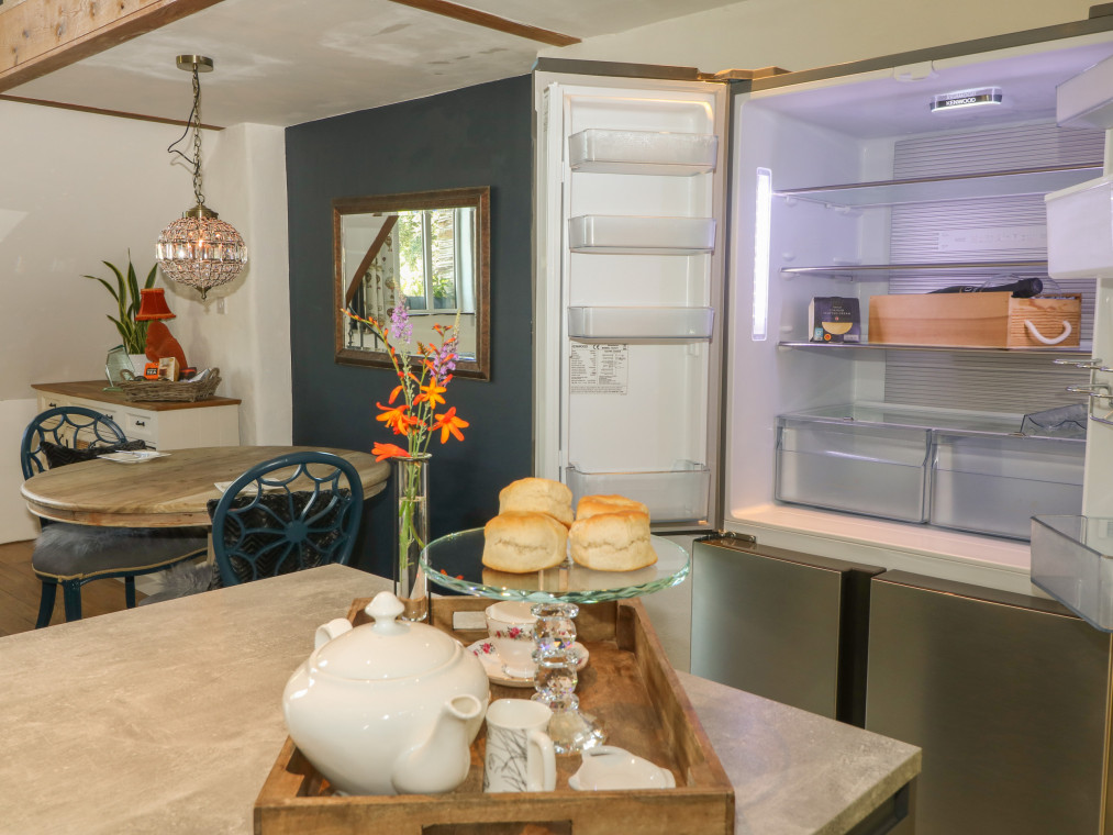A truly special holiday experience awaits you at this beautiful, elegant Grade II listed converted barn close to Watergate Bay and Mawgan Porth. Stylish and luxurious, The Hideaway is the ultimate couples' retreat, with no expense spared. From the lofty, open plan living area, the eye is drawn immediately to the galleried bedroom, lavishly furnished with a freestanding bathtub, 42" Smart TV, super king bed and crisp white linens. Downstairs, a sleek contemporary well-equipped kitchen leads off from the restful lounge area, where a generous log burner forms the hub of this romantic retreat. The terrace outside - complete with ornamental pond, loungers and a chiminea; provides a very pretty spot in which to enjoy a morning coffee or evening sundowner. Guests can also enjoy wandering through the estate's orchard and paddock, as well as the woodland and ruins of the grand manor house which once took pride of place just a short walk away. Blissfully peaceful and secluded, you are unlikely to see anyone else during your stay, perhaps only the property owners or guests of the adjoining barn, the Lost Barn. When you are ready to explore further, the beautiful north Cornish coast is just a short drive away, offering fantastic walks, stunning scenery and some of the best surfing conditions in the UK. But if all this sounds a bit too energetic for you, then why not simply relax and unwind with a bit of pampering at either the Bedruthan Steps or the adults-only Scarlet Hotel. Foodies are spoilt for choice in this part of the world, too, Rick Stein and Paul Ainsworth's restaurants in nearby Padstow and Nathan Outlaw's at Port Isaac. One bedroom. 1 x first floor mezzanine with super-king size bed,free standing ball and claw foot bath and TV. Ground floor shower room with walk in shower, WC and freestanding marble basin. Open plan living area with wood burner, kitchen, breakfast bar, dining area and sitting area. Amenities for Rental Oil-fired underfloor heating and woodburner Electric fan oven and ceramic hob, combination microwave oven, American style fridge/freezer, dishwasher, Washer/Dryer, Nespresso coffee machine, , 50" Smart TV with Freesat, WiFi Underfloor heating Fuel, power and starter pack for fire inc. in rent Bed linen, bath and beach towels, and bathrobes inc. in rent Complimentary hamper of Cornish produce. Complimentary Cornish cream tea on arrival Off road parking for 2 cars Pretty terrace with ornamental pond, garden furniture, loungers and barbecue Up to 2 medium sized, or one large, well-behaved pet/s welcome at £50 each per week, by arrangement with the owner Sorry, no smoking Shop and pub 1 mile Beaches 3 miles.
