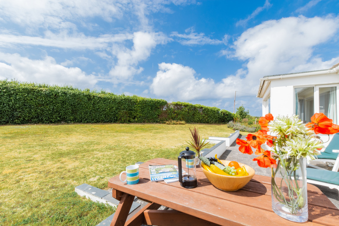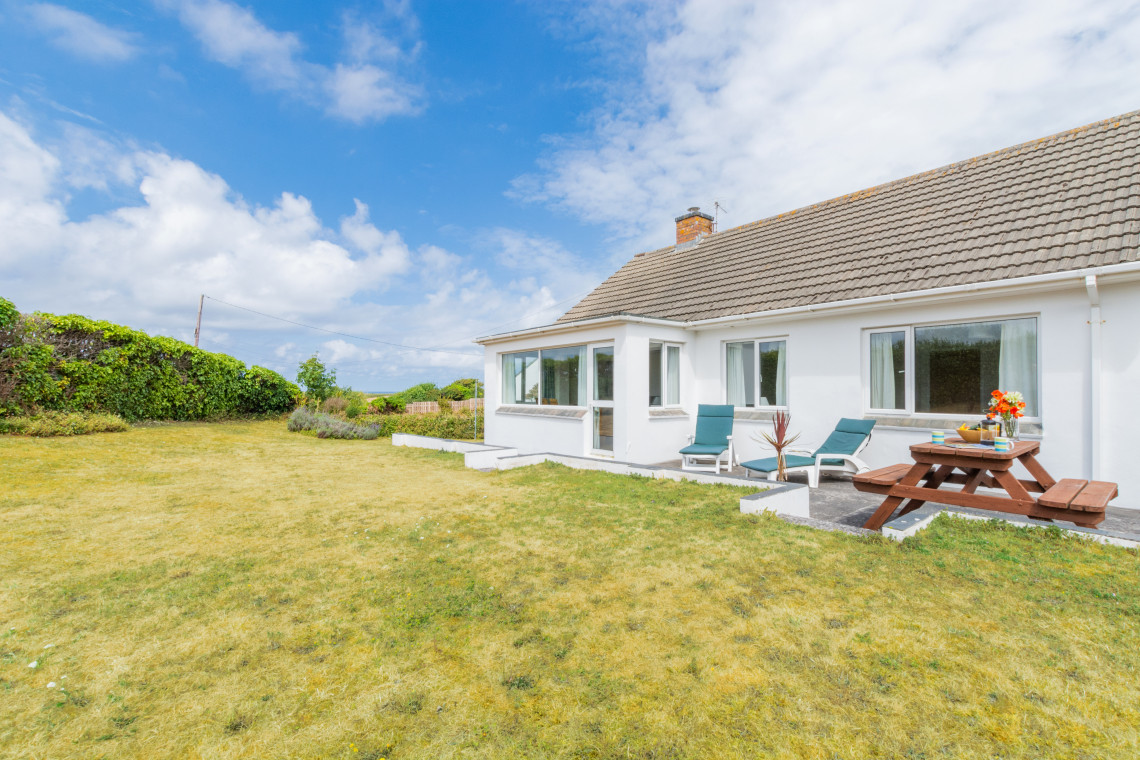 - Garden: Lawned garden, picnic bench, 2 sun loungers and chairs.